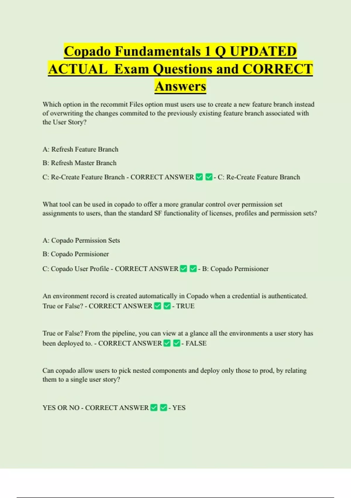 Copado Fundamentals 1 Q UPDATED ACTUAL Exam Questions and CORRECT Answers
