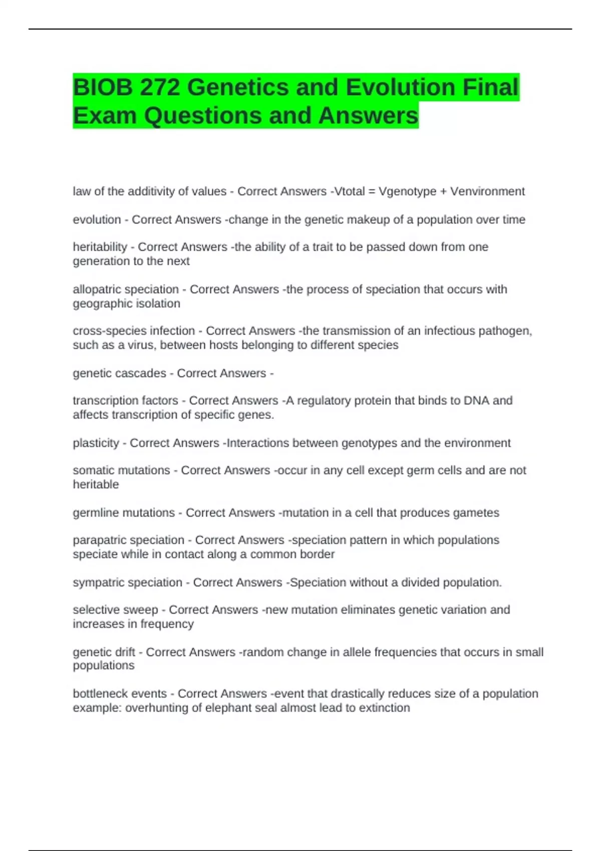 evolution - Correct Answers -change in the genetic makeup of a population over time