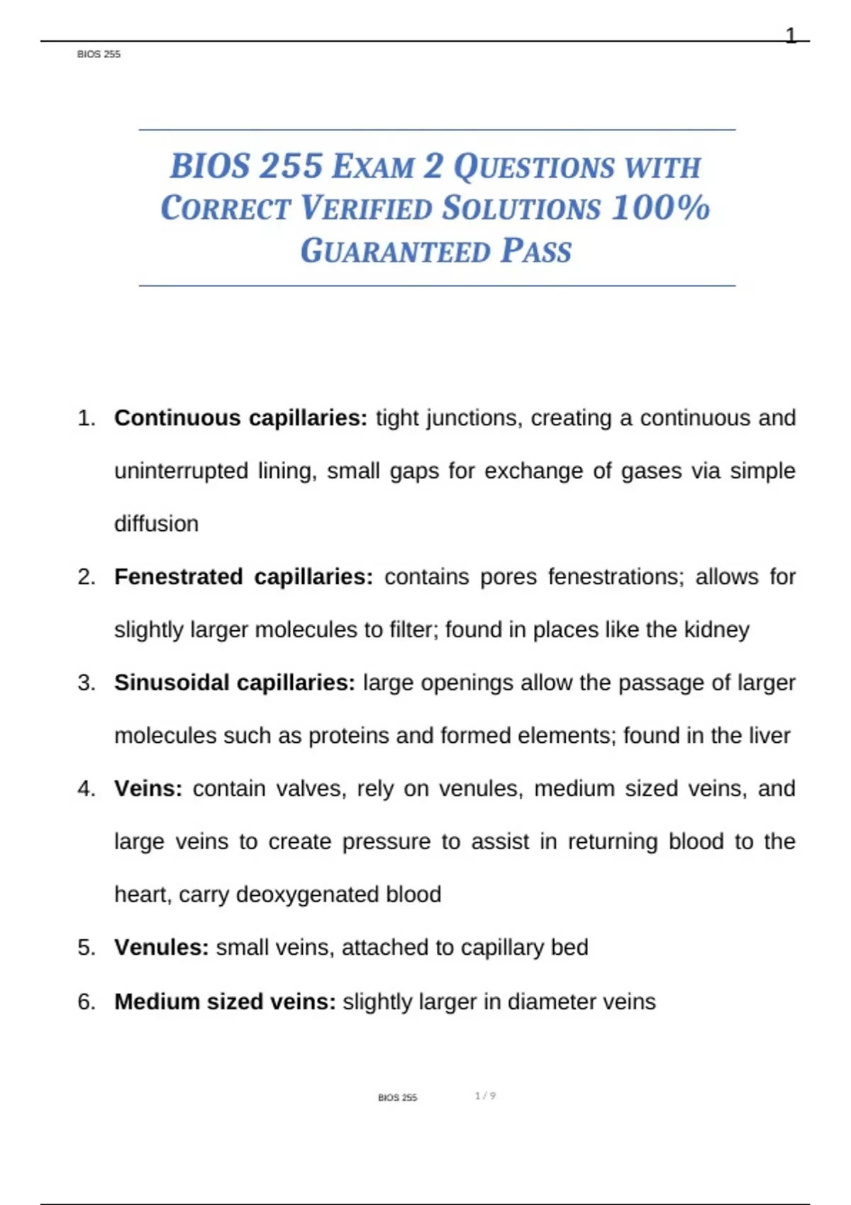 BIOS 255 EXAM 2 QUESTIONS WITH