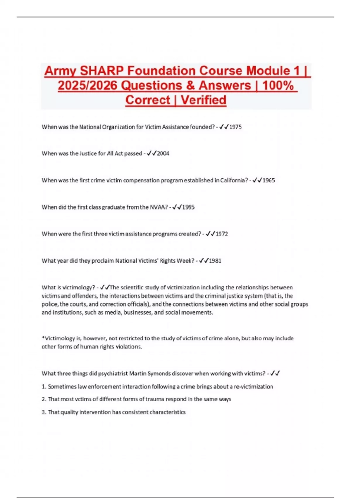 Army SHARP Foundation Course Module 1 | 2025/2026 Questions & Answers | 100% Correct | Verified