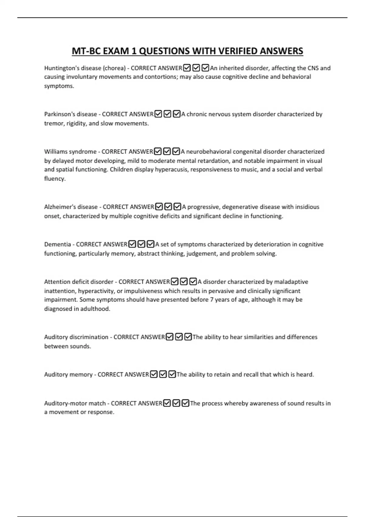 Auditory memory - CORRECT ANSWER✅✅✅The ability to retain and recall that which is heard.