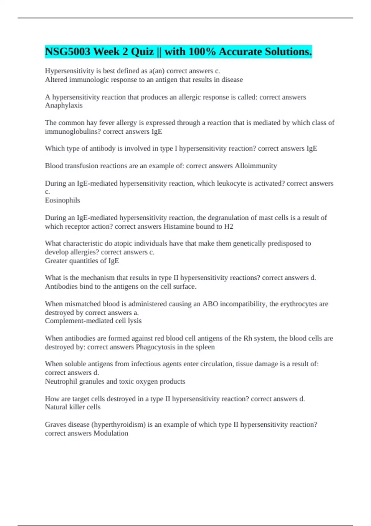 Hypersensitivity is best defined as a(an) correct answers c.