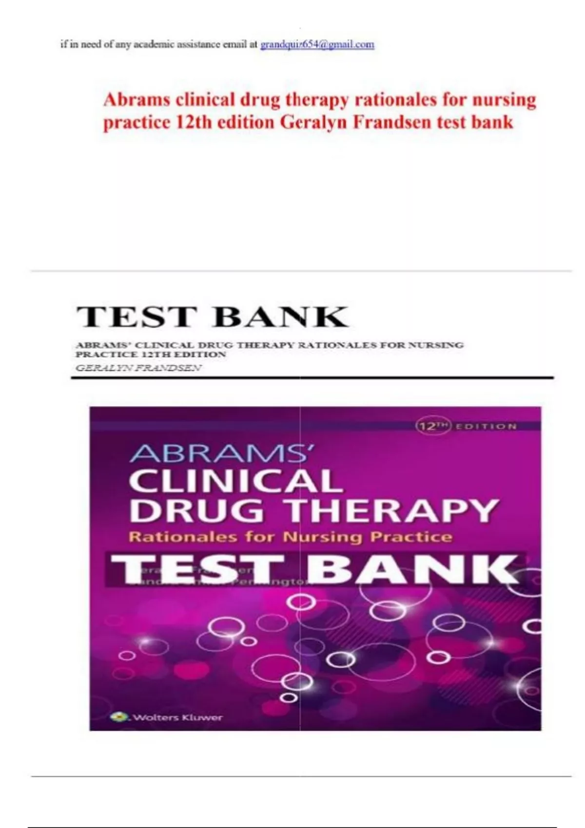 Abrams clinical drug therapy rationales for nursing practice 12th edition Geralyn Frandsen test bank_ Abrams clinical drug therapy rationales for nursing practice 12th edition Geralyn Frandsen test bank_ Abrams clinical drug therapy rationales for nursing practice 12th edition Geralyn Frandsen test bank_ Abrams clinical drug therapy rationales for nursing practice 12th edition Geralyn Frandsen test bank_