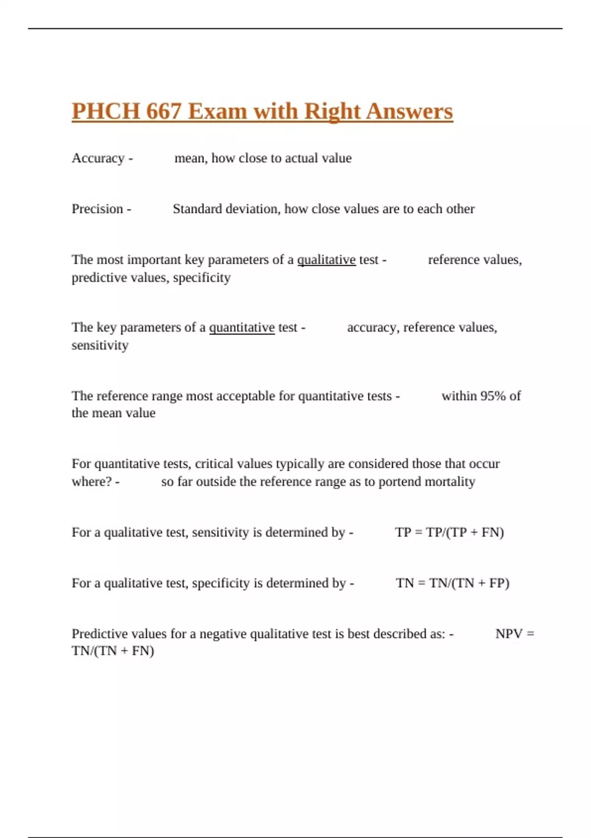 The key parameters of a quantitative test - ✅✅ accuracy, reference values,