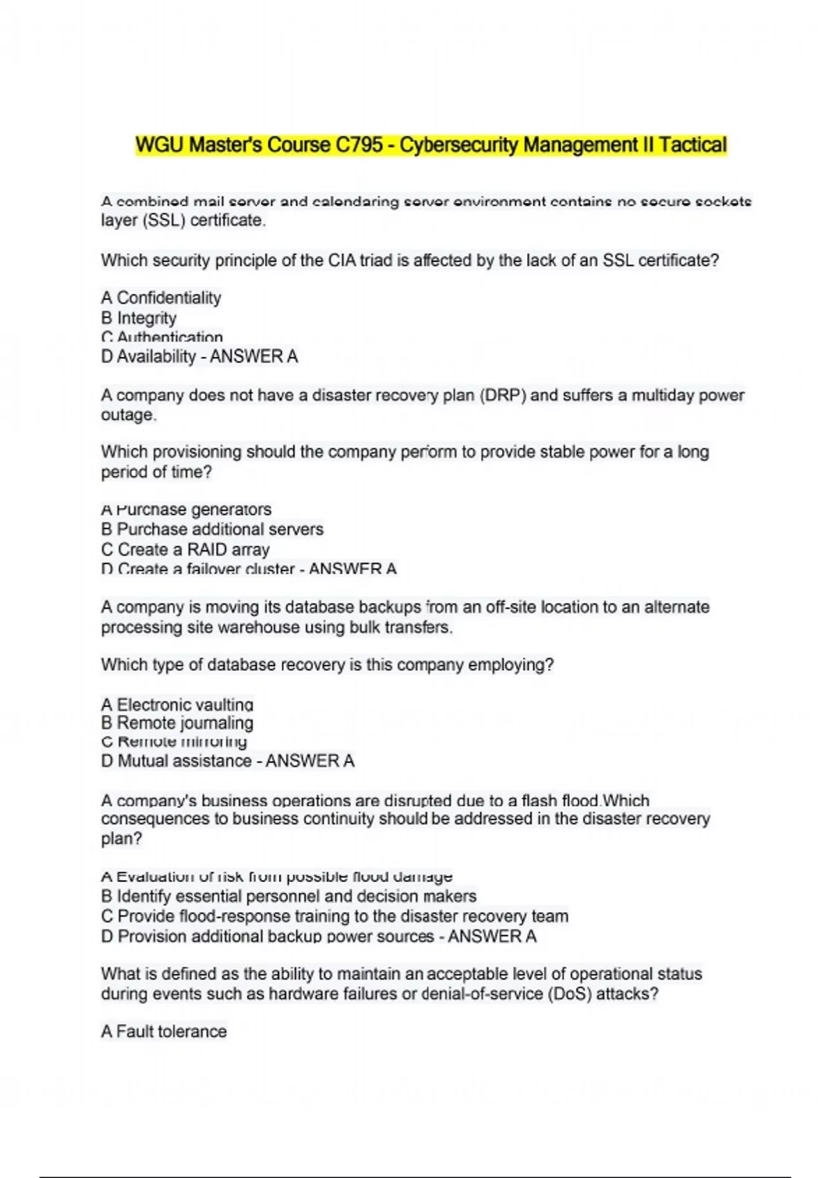 WGU Master's Course C795 - Cybersecurity Management II Tactical