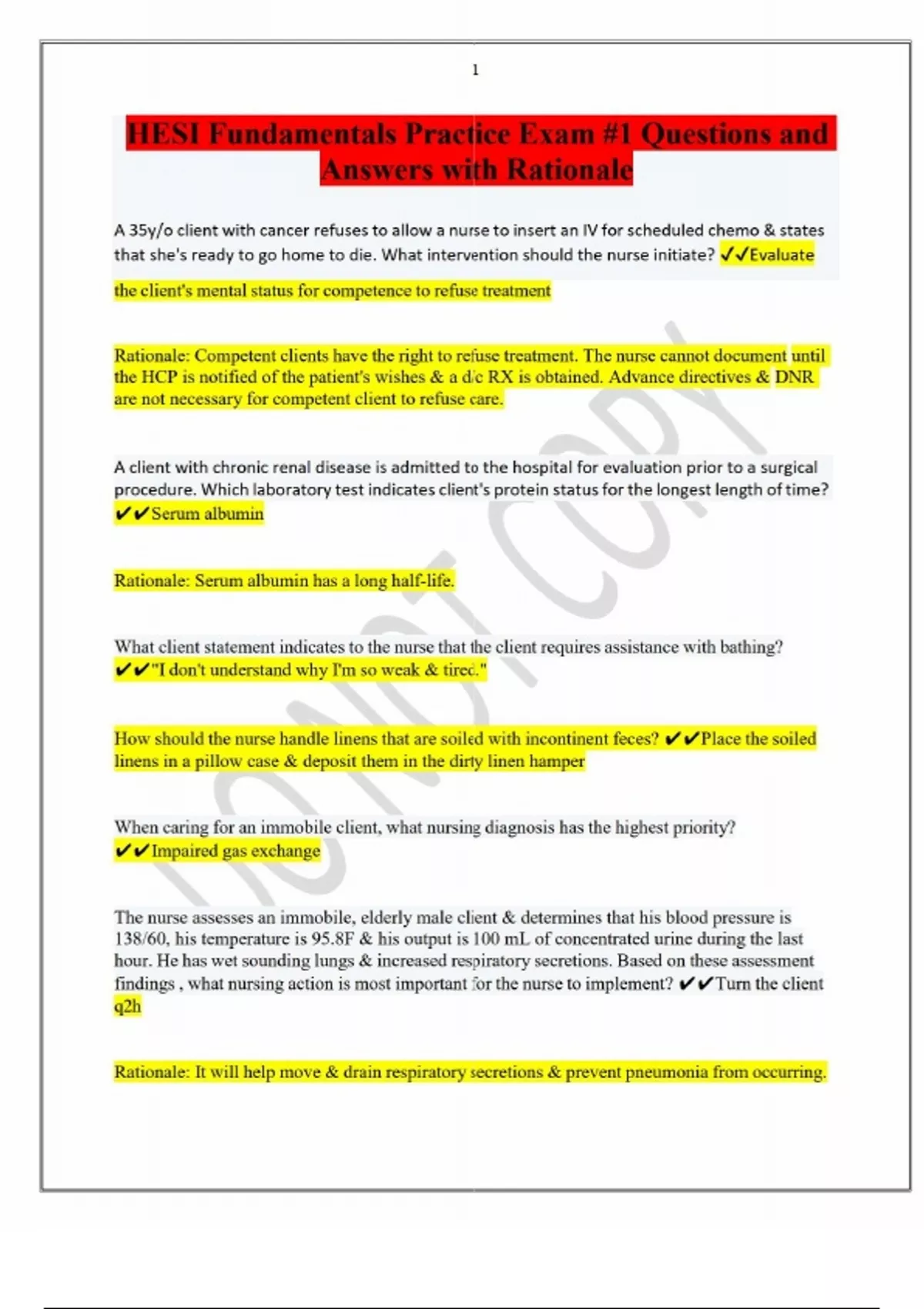HESI Fundamentals Practice Exam #1 Questions and Answers with Rationale 2025