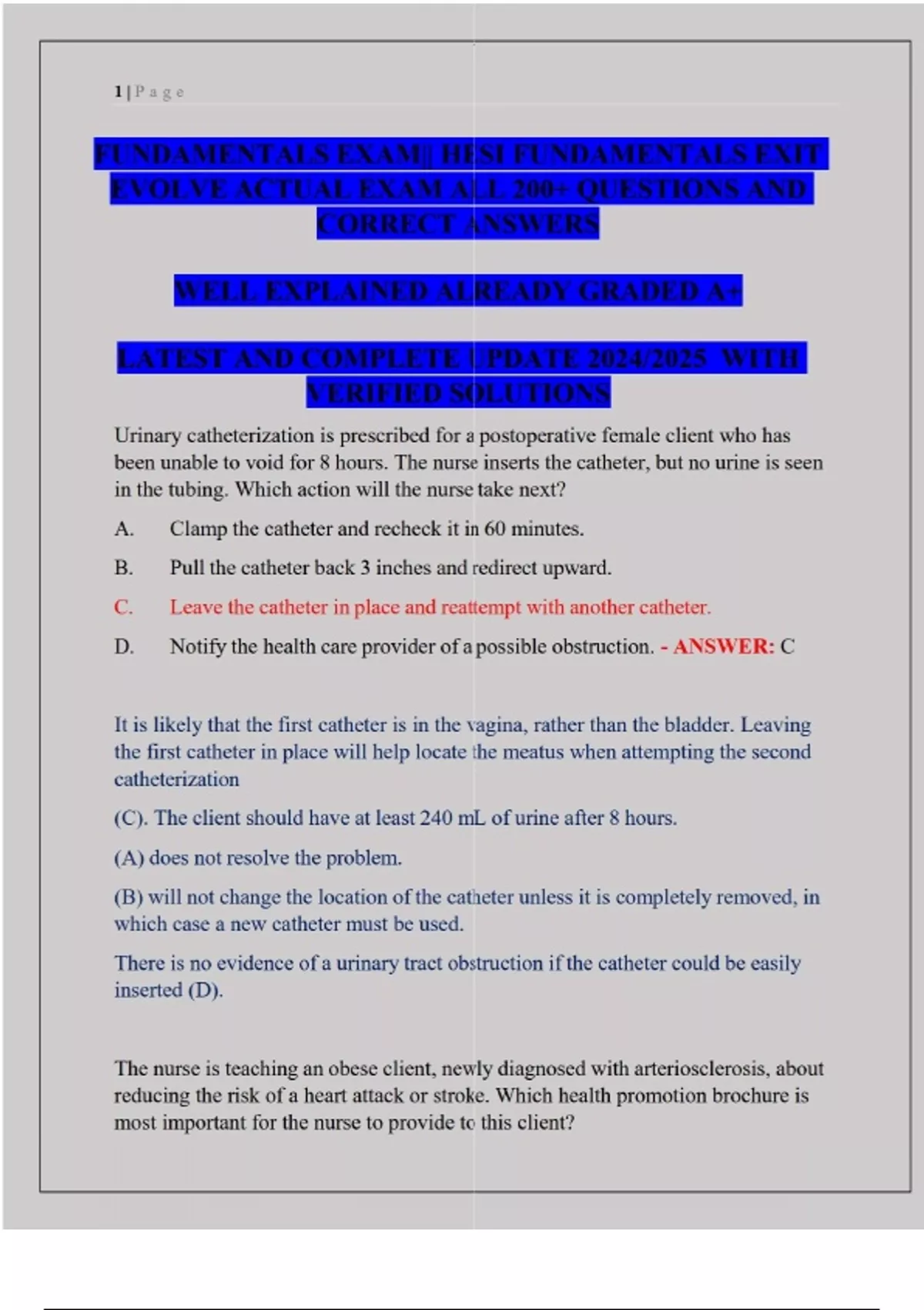 FUNDAMENTALS EXAM|| HESI FUNDAMENTALS EXIT EVOLVE ACTUAL EXAM ALL 200+ QUESTIONS AND CORRECT ANSWERS WELL EXPLAINED ALREADY GRADED A+ LATEST AND COMPLETE UPDATE 2024/2025 WITH VERIFIED SOLUTIONS