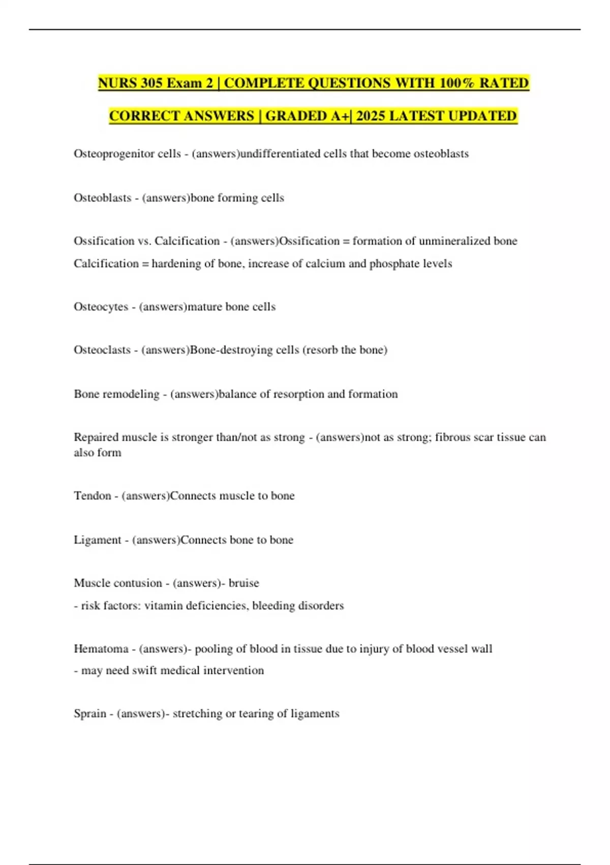 NURS 305 Exam 2 | COMPLETE QUESTIONS WITH 100% RATED