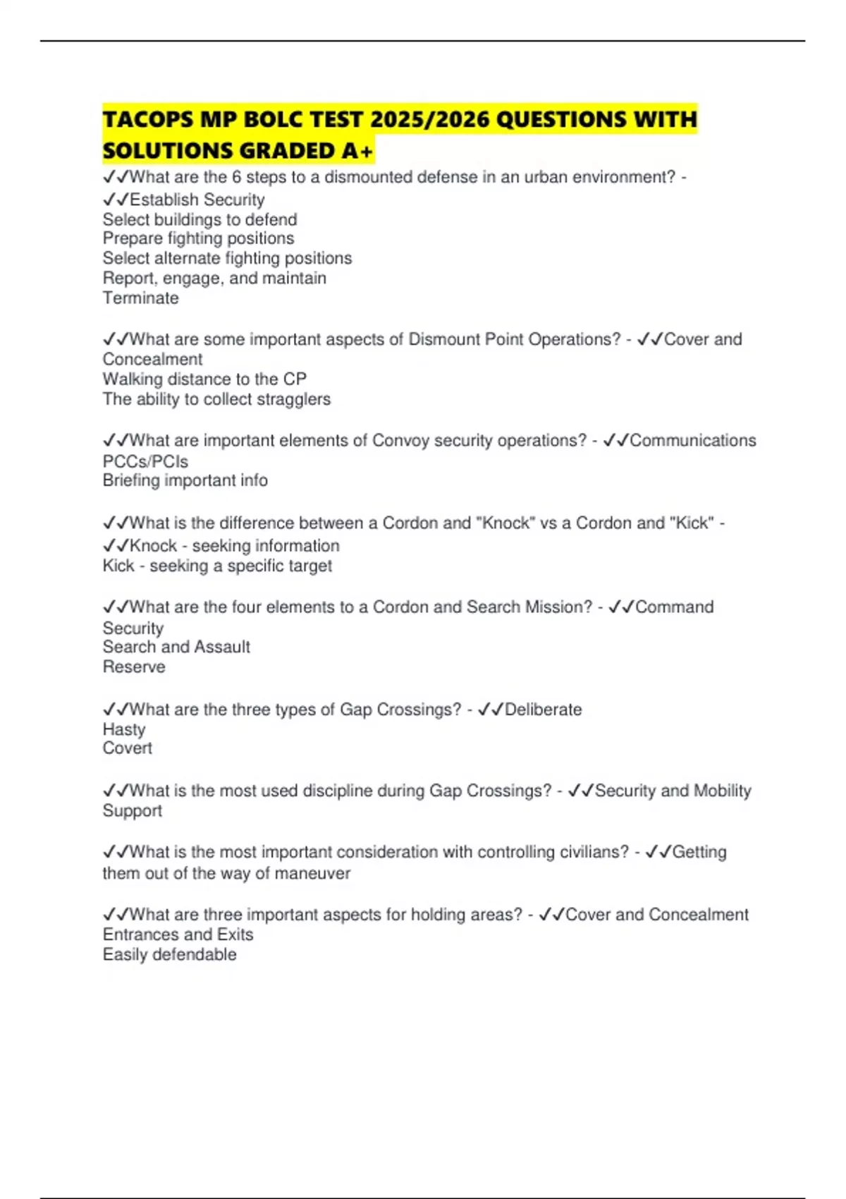 TACOPS MP BOLC TEST 2025/2026 QUESTIONS WITH
