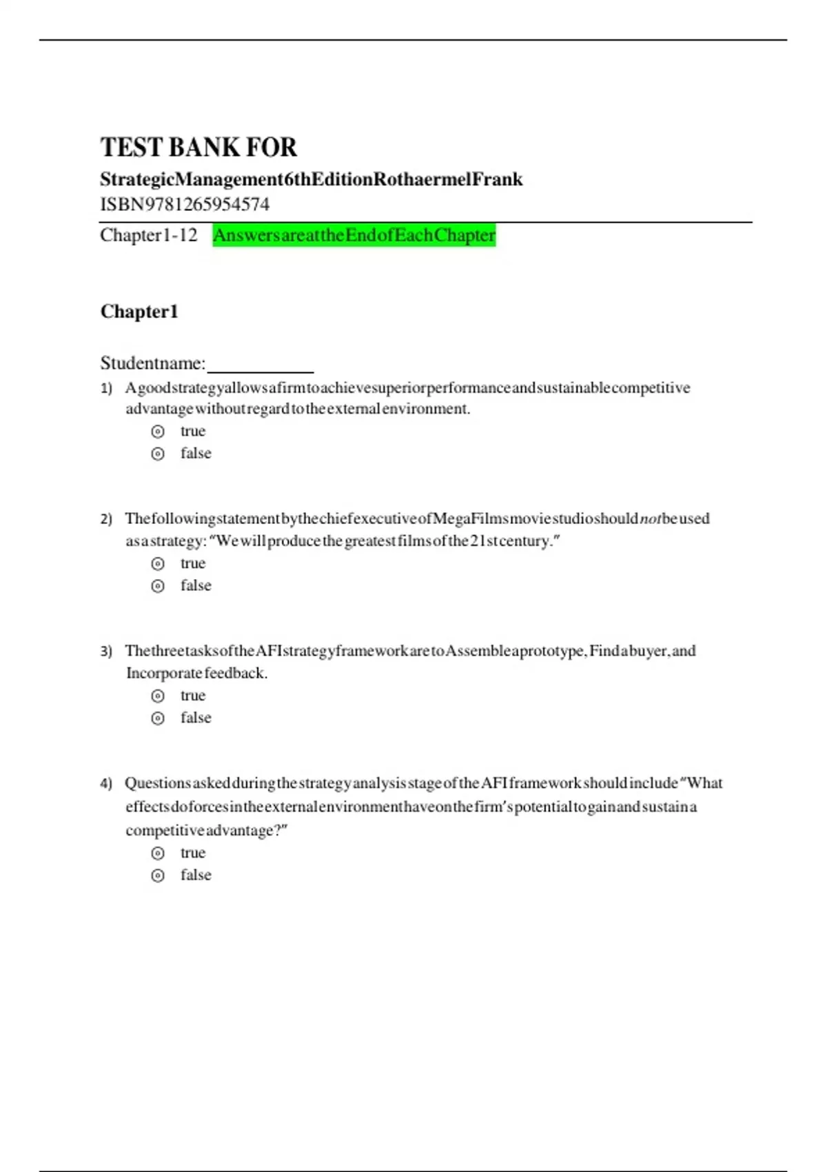 Frank Rothaermel, Strategic Management, 6th Edition TEST BANK, Verified Chapters 1 - 12, Complete Newest Version Frank Rothaermel, Strategic Management, 6th Edition TEST BANK, Verified Chapters 1 - 12, Complete Newest Version Frank Rothaermel, Strategic Management, 6th Edition TEST BANK, Verified Chapters 1 - 12, Complete Newest Version Frank Rothaermel, Strategic Management, 6th Edition TEST BANK, Verified Chapters 1 - 12, Complete Newest Version