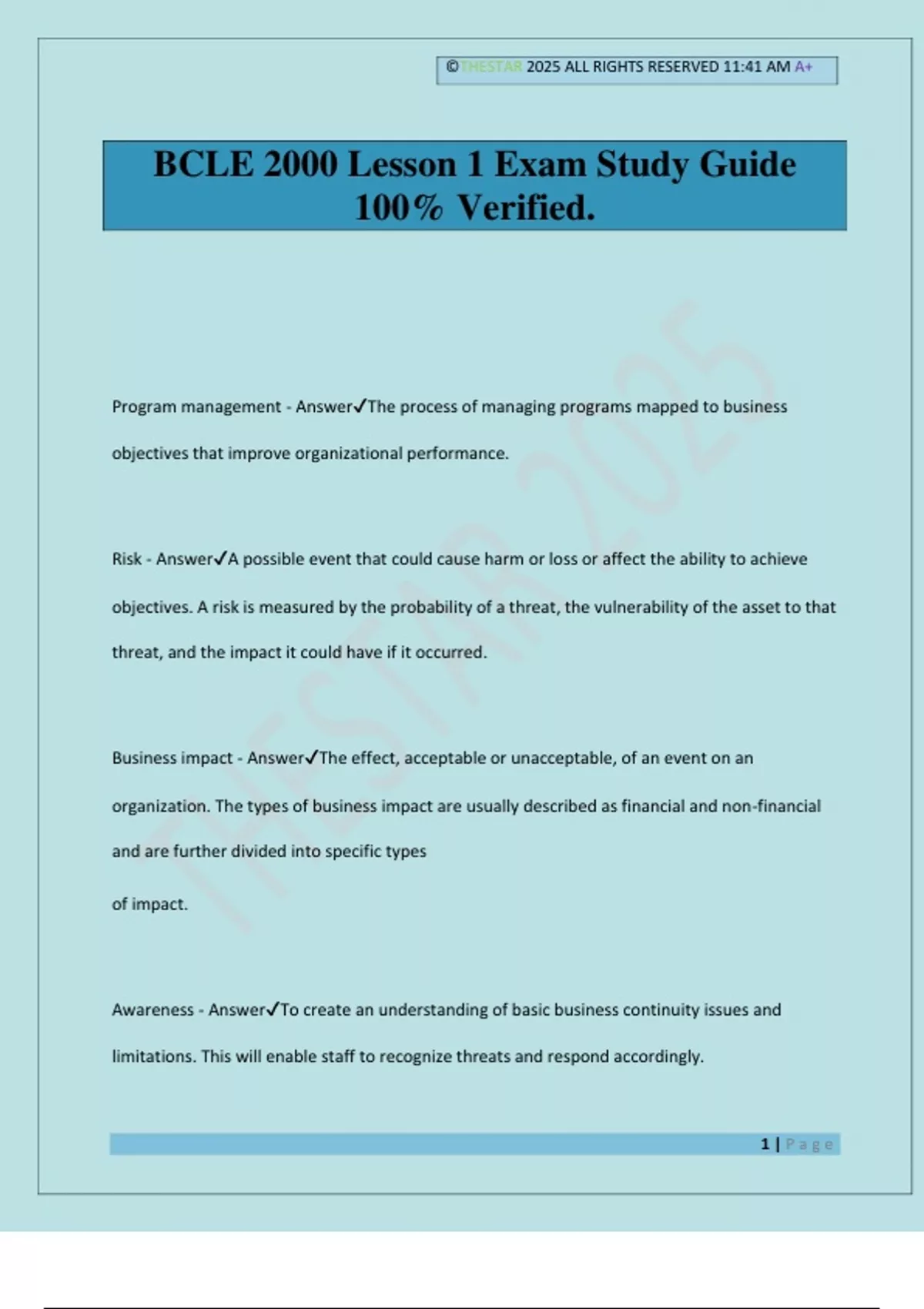 Awareness - Answer✔To create an understanding of basic business continuity issues and