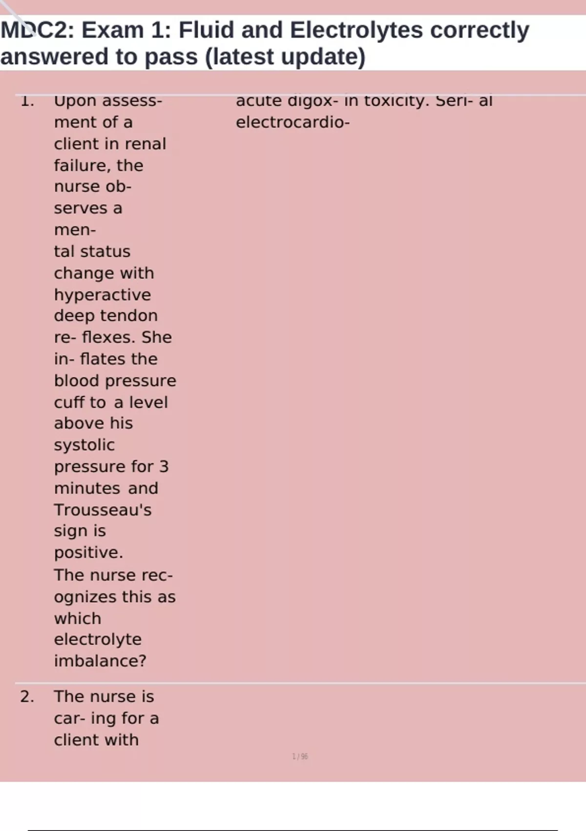 MDC2: Exam 1: Fluid and Electrolytes correctly answered to pass (latest update)