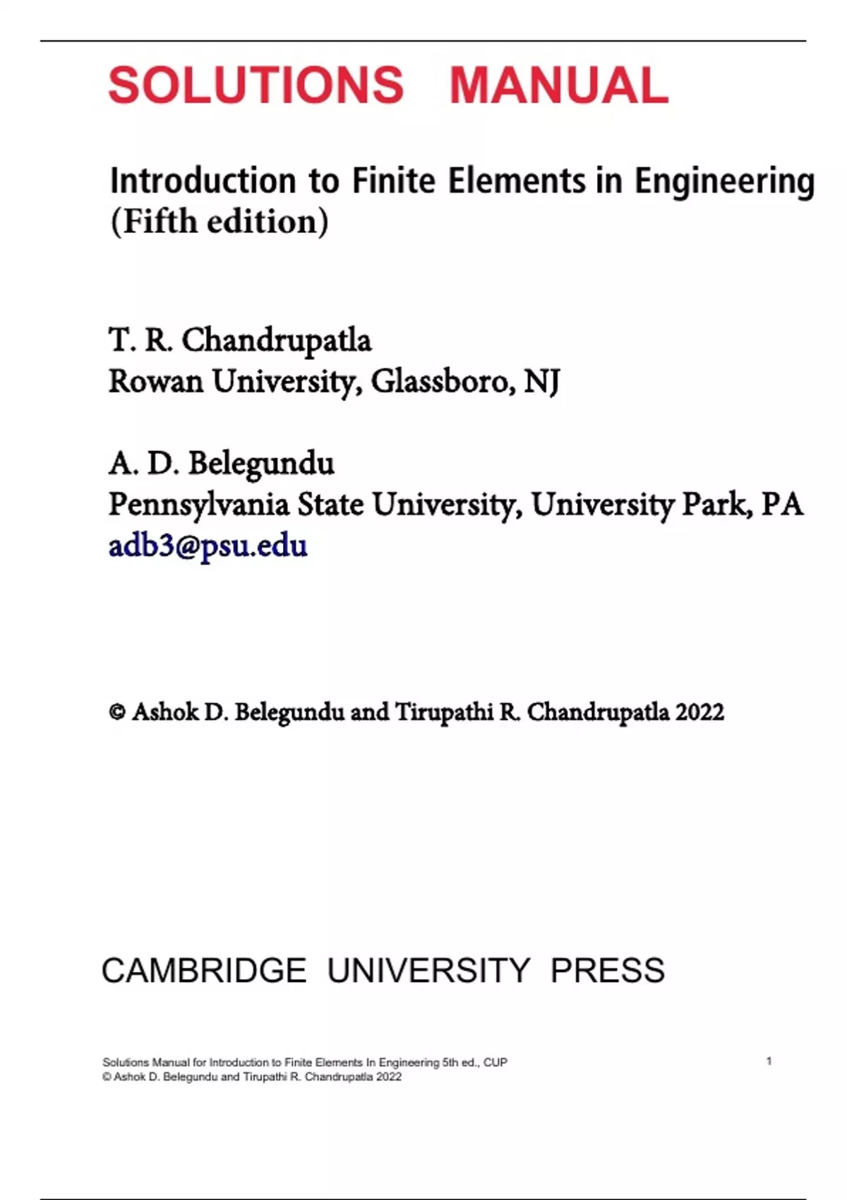 Solutions Manual for Introduction to Finite Elements In Engineering 5th ed., CUP 2