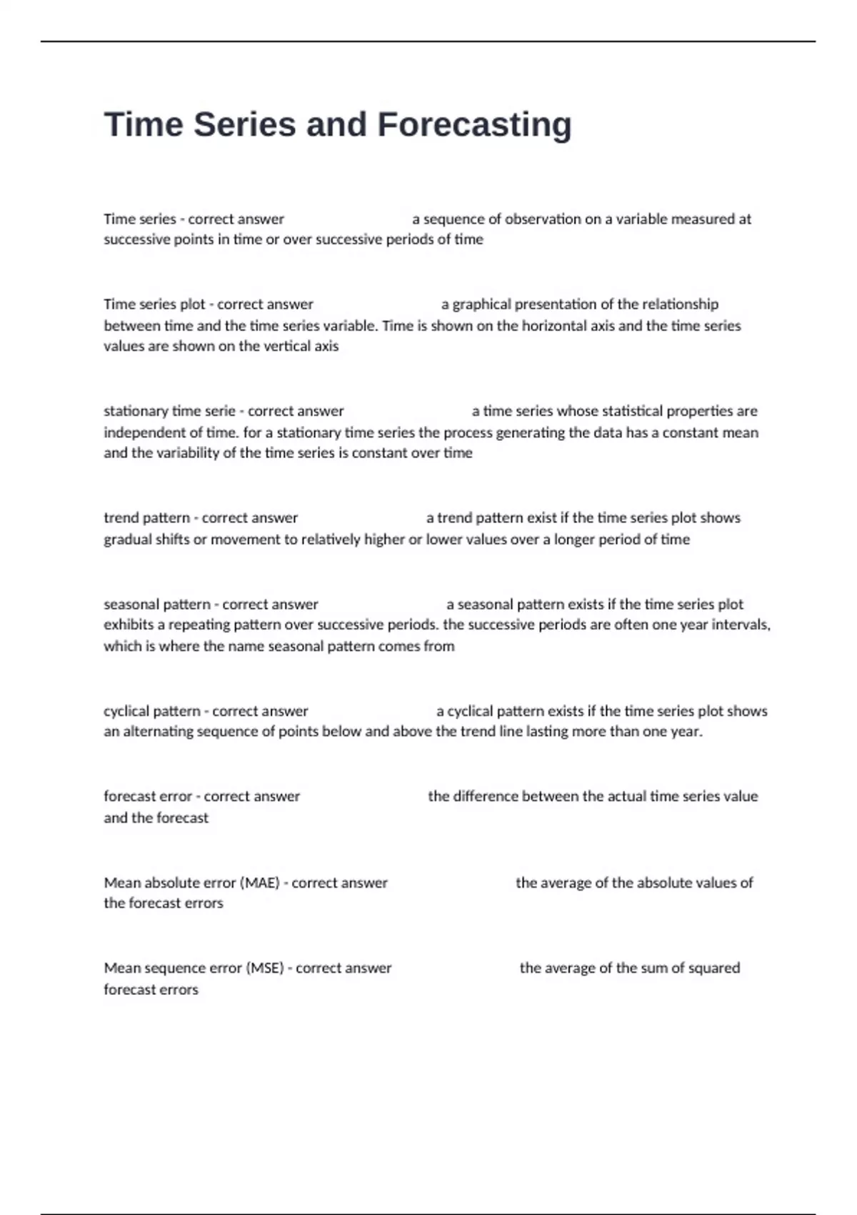 cyclical pattern - correct answer a cyclical pattern exists if the time series plot shows