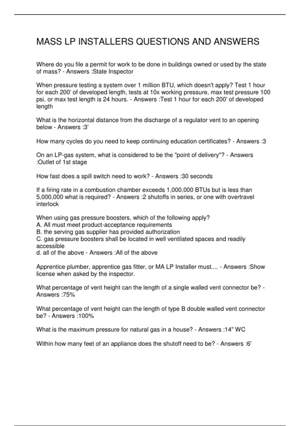 MASS LP INSTALLERS QUESTIONS AND ANSWERS