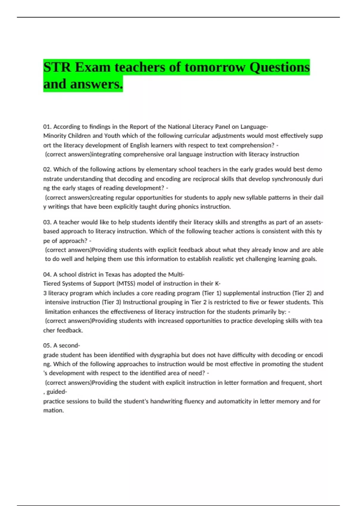 (correct answers)integrating comprehensive oral language instruction with literacy instruction