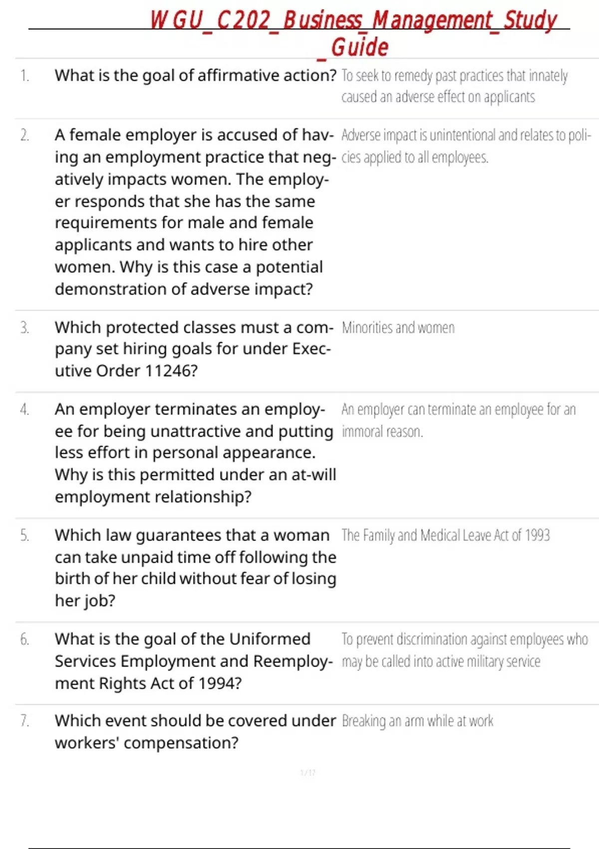 1. What is the goal of affirmative action? To seek to remedy past practices that innately