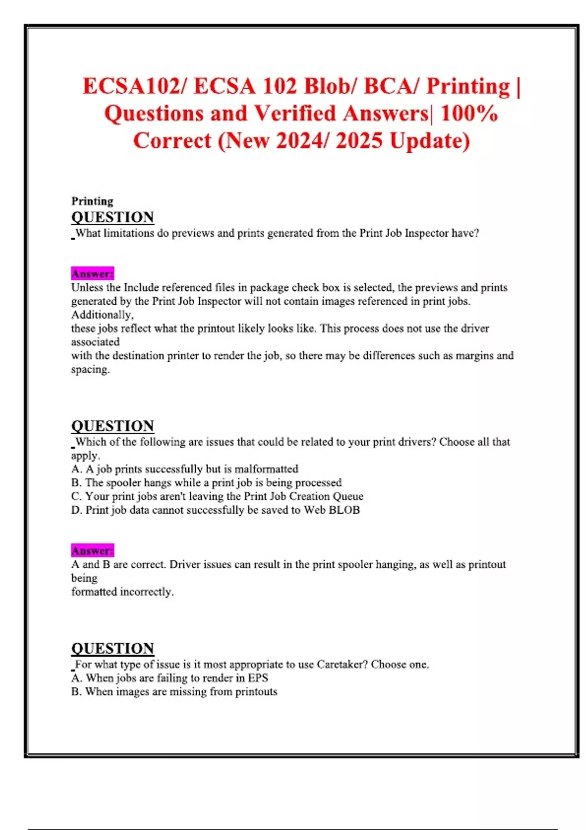 ECSA102 ECSA 102 Blob BCA Printing Questions and Verified Answers 100% Correct (New Update)ECSA102 ECSA 102 Blob BCA Printing Questions and Verified Answers 100% Correct (New Update)ECSA102 ECSA 102 Blob BCA Printing Questions and Verified Answers 100% Correct (New Update)ECSA102 ECSA 102 Blob BCA Printing Questions and Verified Answers 100% Correct (New Update)ECSA102 ECSA 102 Blob BCA Printing Questions and Verified Answers 100% Correct (New Update)