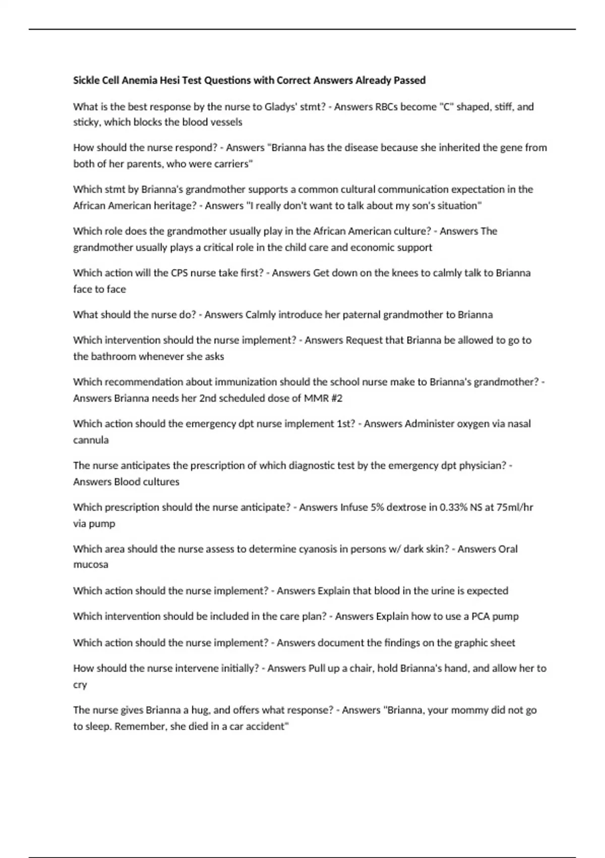 How should the nurse respond? - Answers "Brianna has the disease because she inherited the gene from