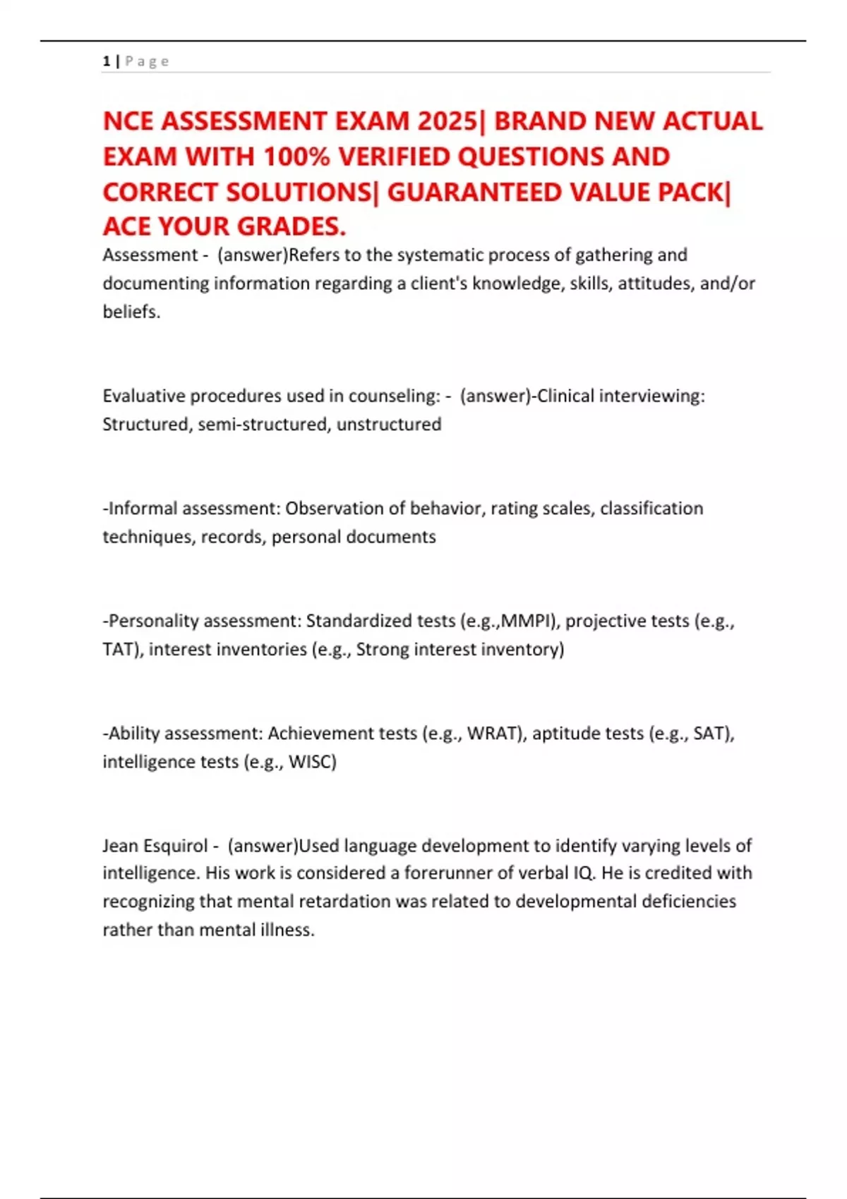 NCE ASSESSMENT EXAM 2025| BRAND NEW ACTUAL
