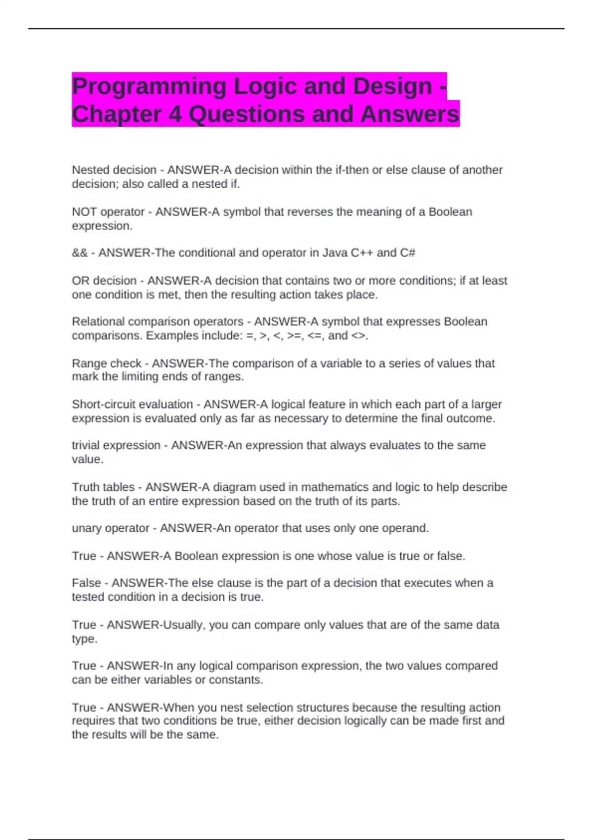 True - ANSWER-A Boolean expression is one whose value is true or false.