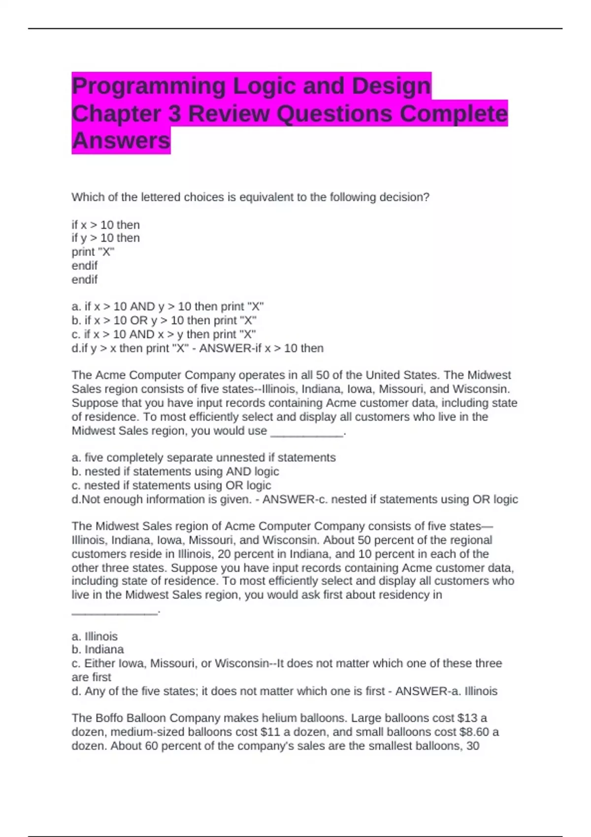 Programming Logic and Design Chapter 3 Review Questions Complete Answers