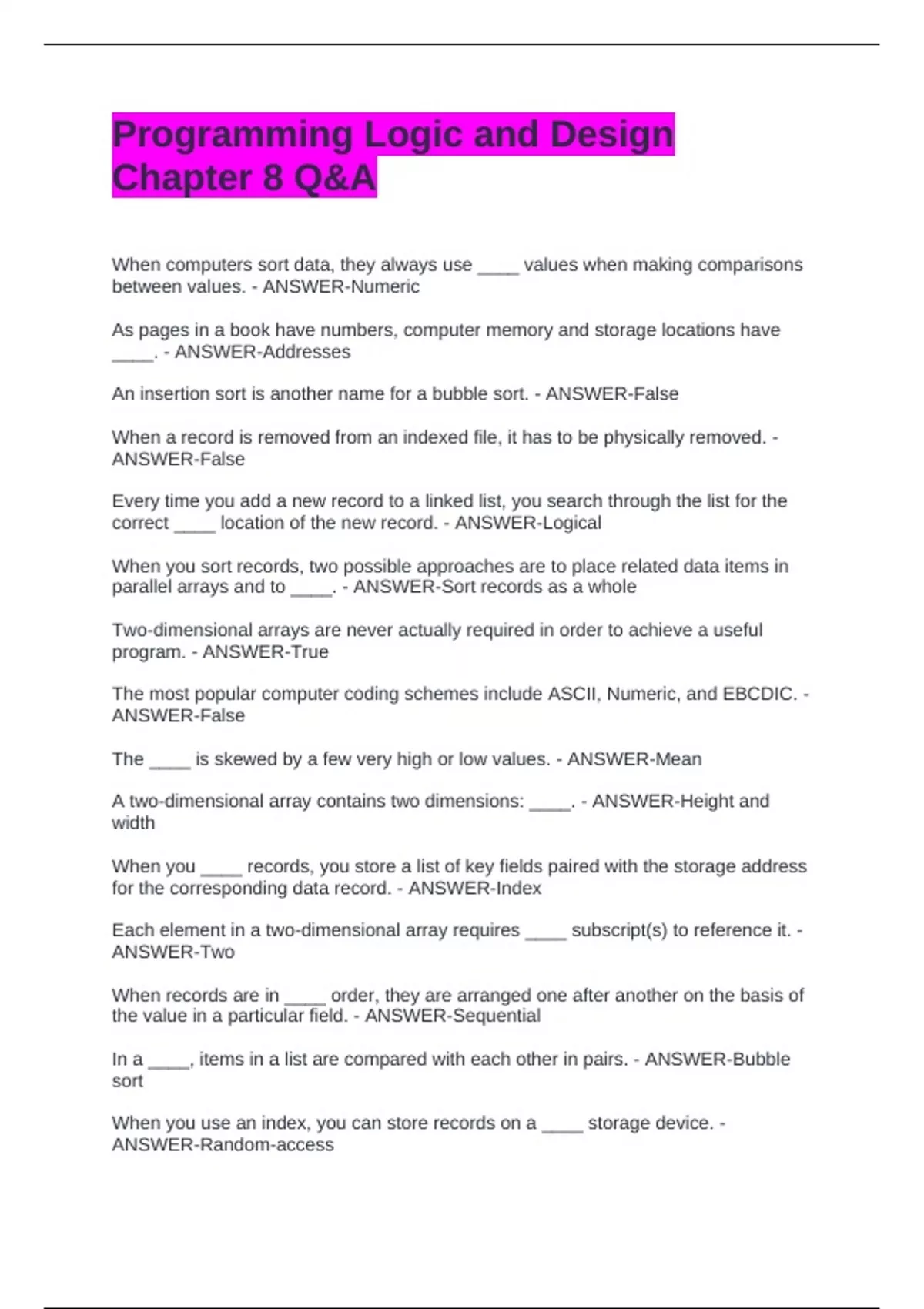 parallel arrays and to ____. - ANSWER-Sort records as a whole