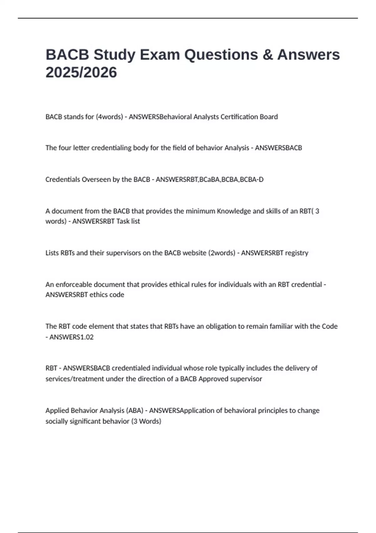 RBT - ANSWERSBACB credentialed individual whose role typically includes the delivery of