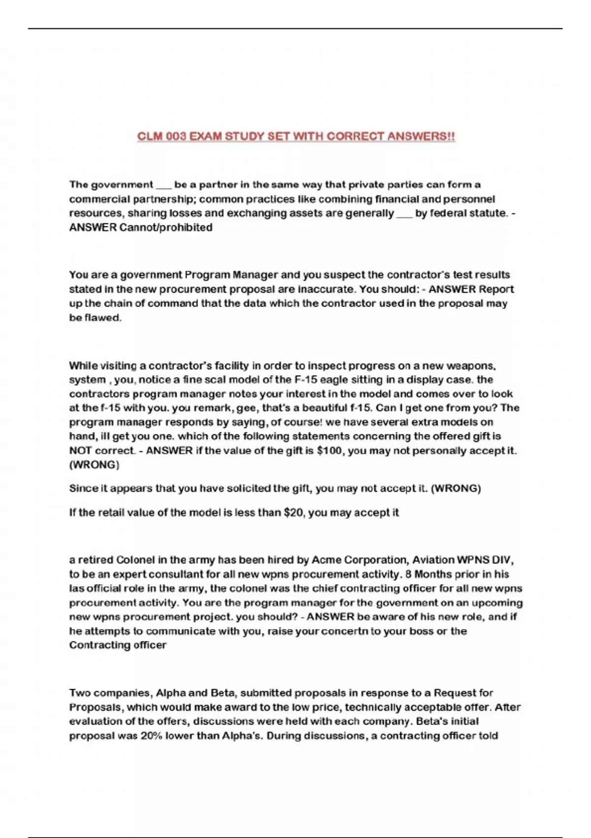 CLM 003 EXAM STUDY SET WITH CORRECT ANSWERS!!...
