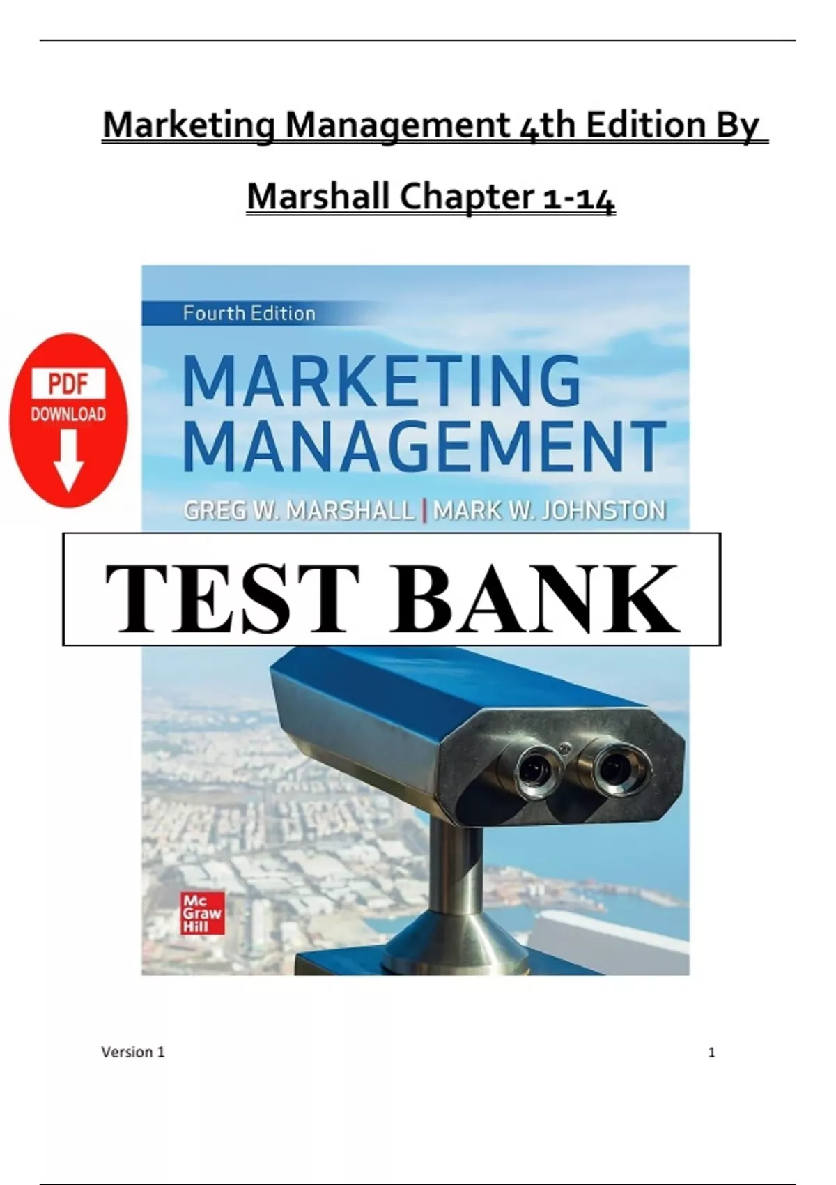 Test Bank for Marketing Management 4th Edition By Mark Johnston Greg Marshall Chapter 1-14