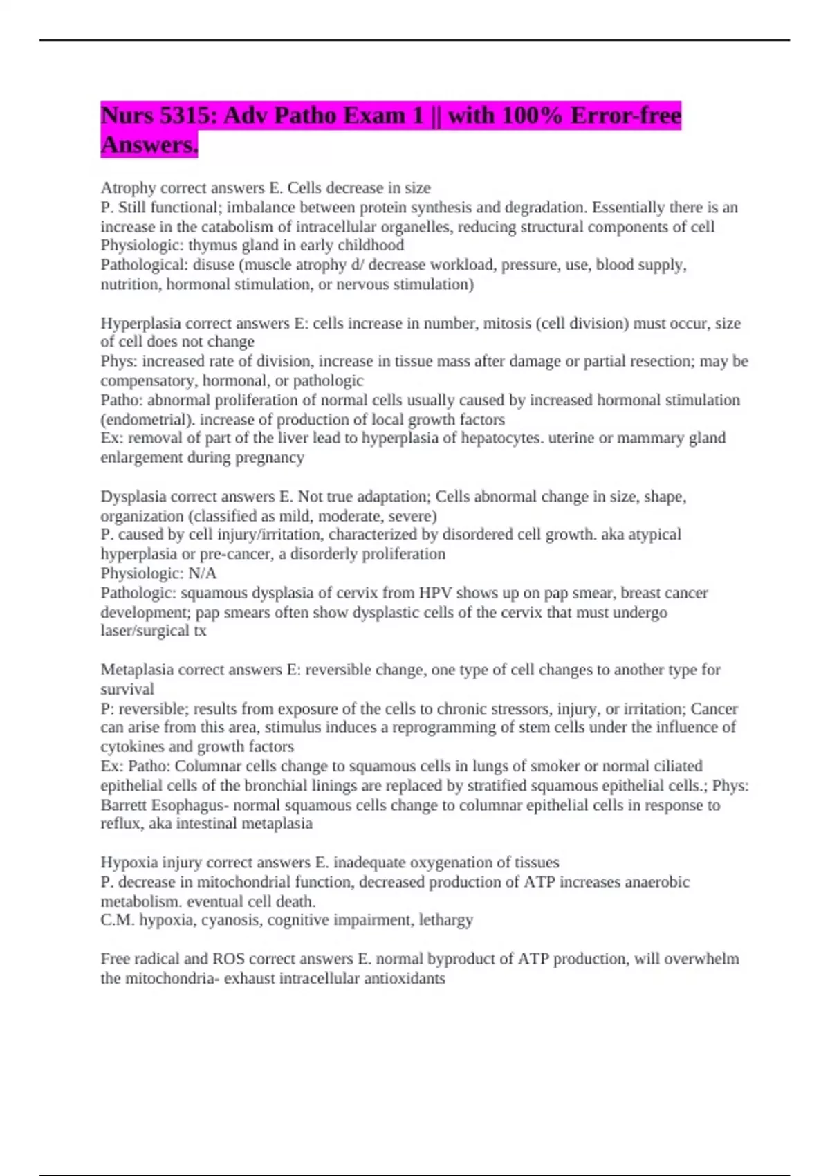 Hyperplasia correct answers E: cells increase in number, mitosis (cell division) must occur, size