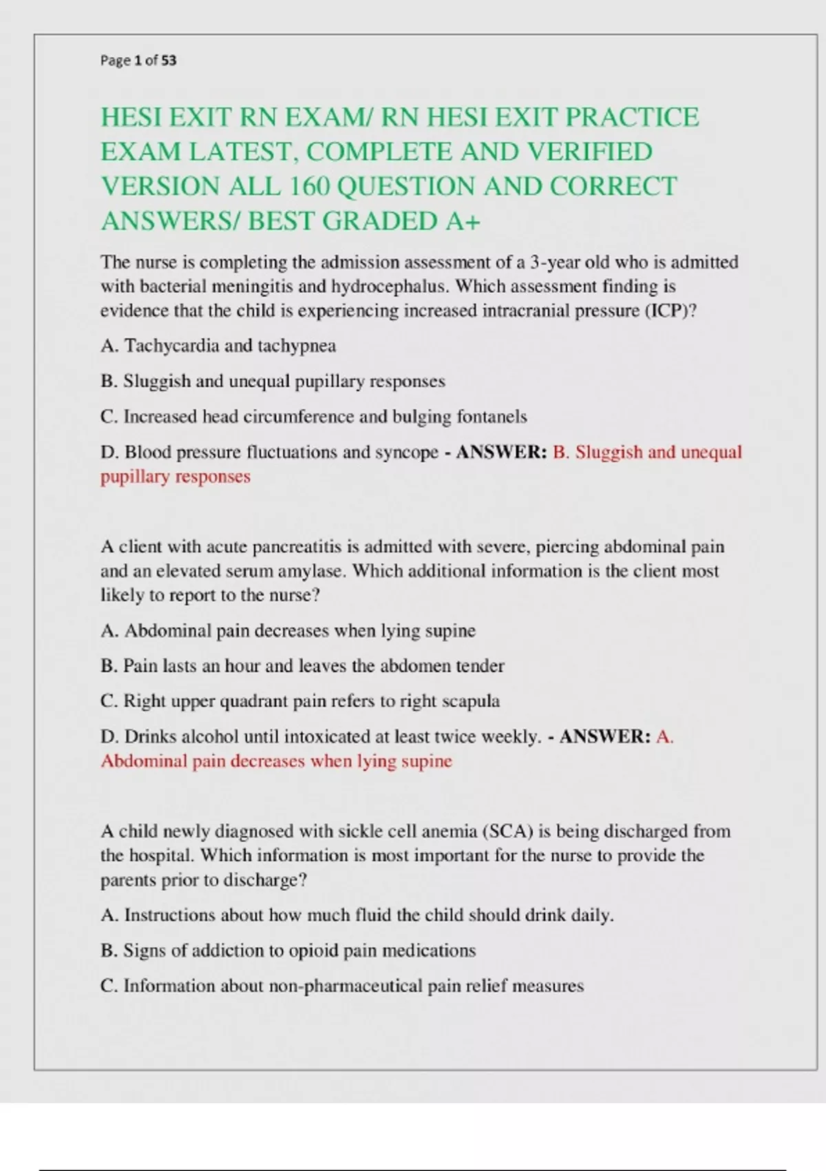 HESI EXIT RN EXAM/ RN HESI EXIT PRACTICE EXAM LATEST, COMPLETE AND VERIFIED VERSION ALL 160 QUESTION AND CORRECT ANSWERS/ BEST GRADED A+
