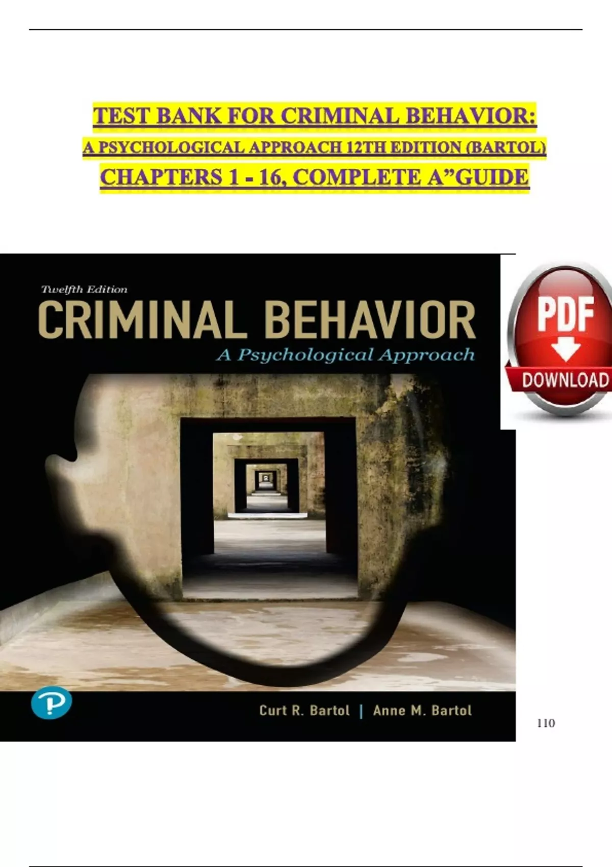 TEST BANK FOR CRIMINAL BEHAVIOR: A PSYCHOLOGICAL APPROACH 12TH EDITION (BARTOL) CHAPTERS 1 - 16, COMPLETE A”GUIDE