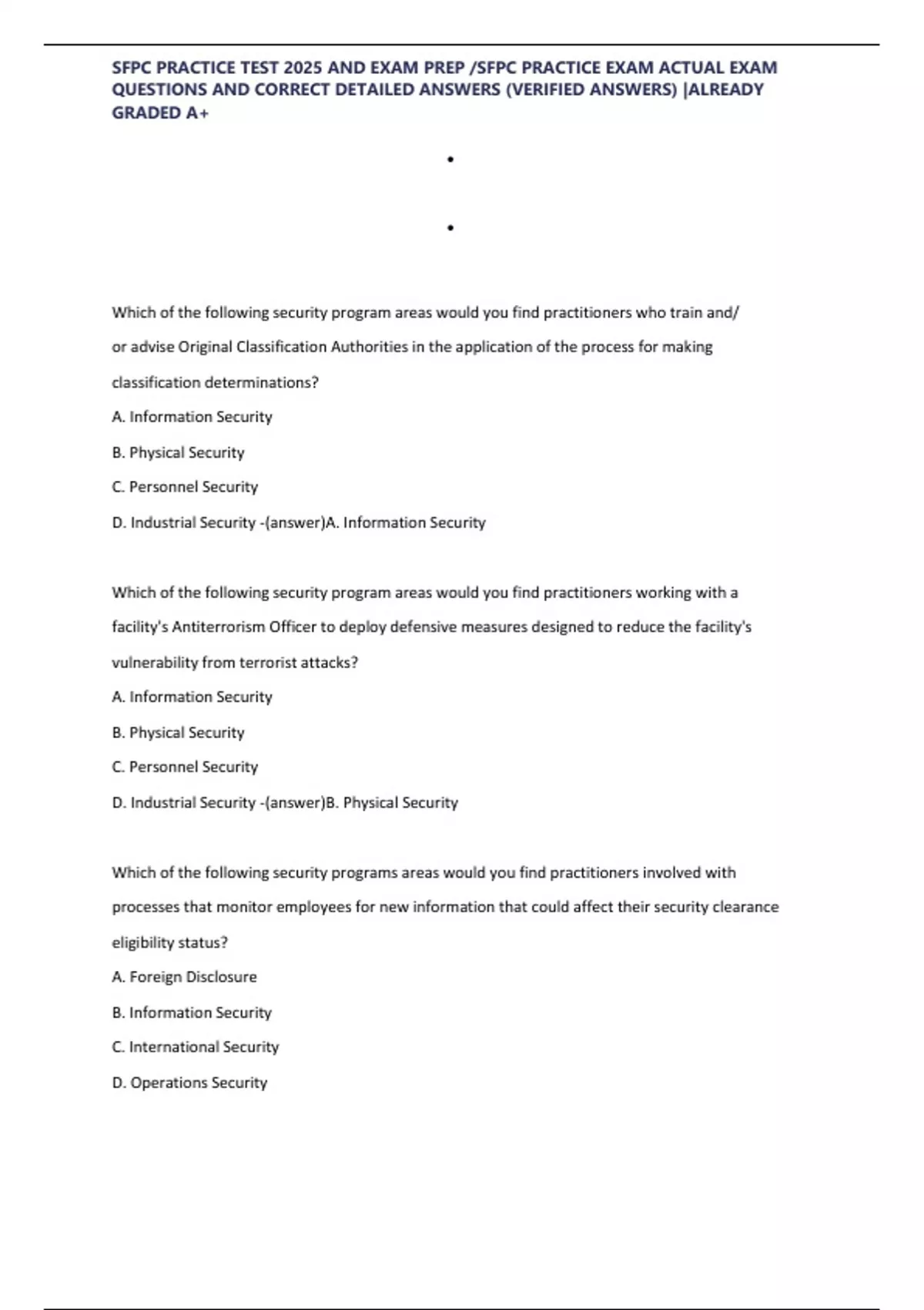 SFPC PRACTICE TEST 2025 AND EXAM PREP /SFPC PRACTICE EXAM ACTUAL EXAM
