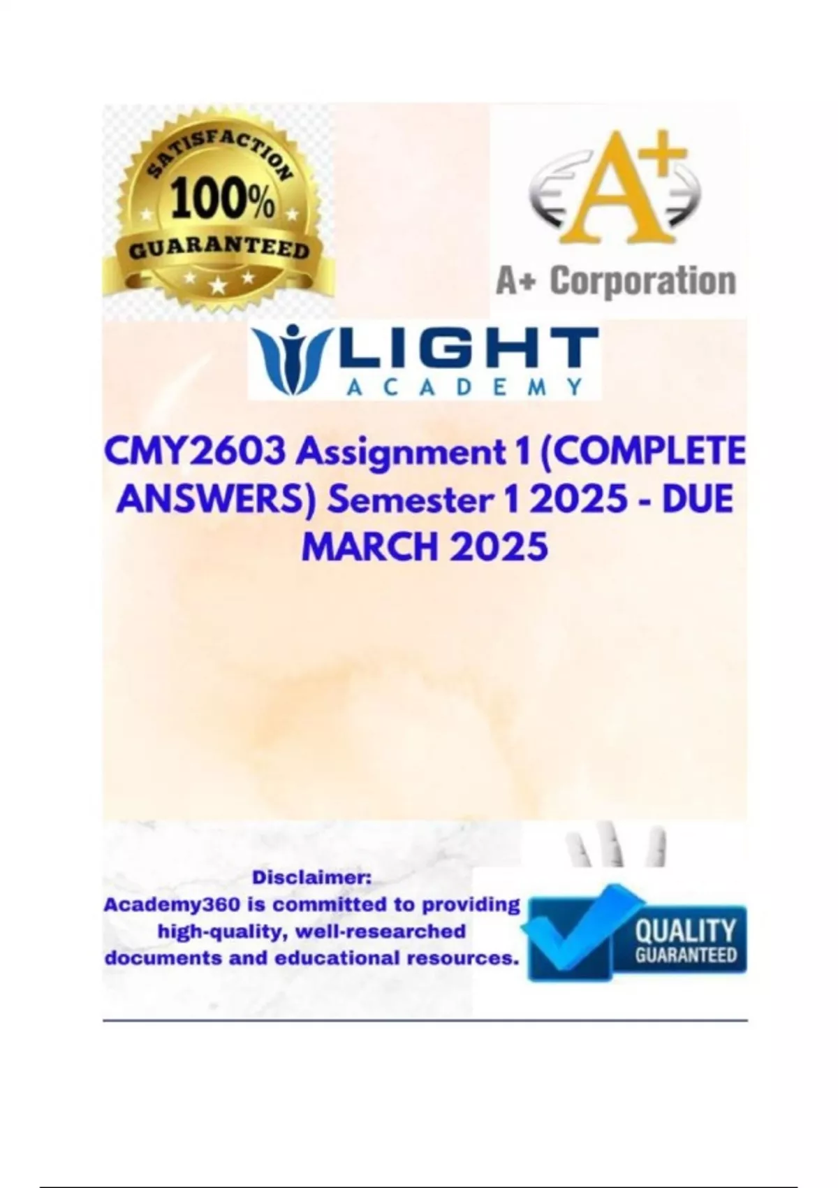 CMY2603 Assignment 1 (COMPLETE ANSWERS) Semester 1 2025 - DUE MARCH 2025; 100% TRUSTED Complete, trusted solutions and explanations