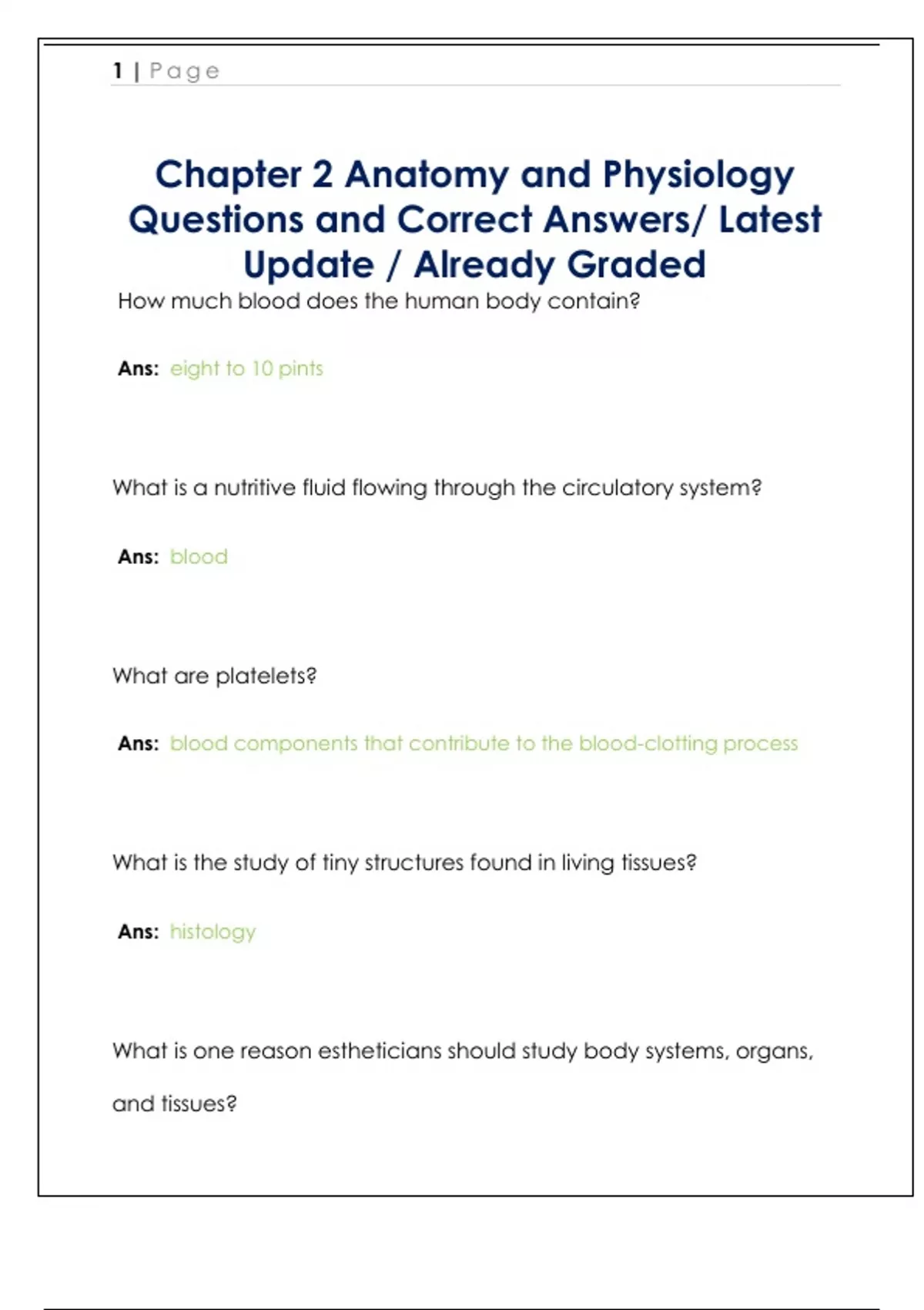Chapter 2 Anatomy and Physiology Questions and Correct Answers/ Latest Update / Already Graded
