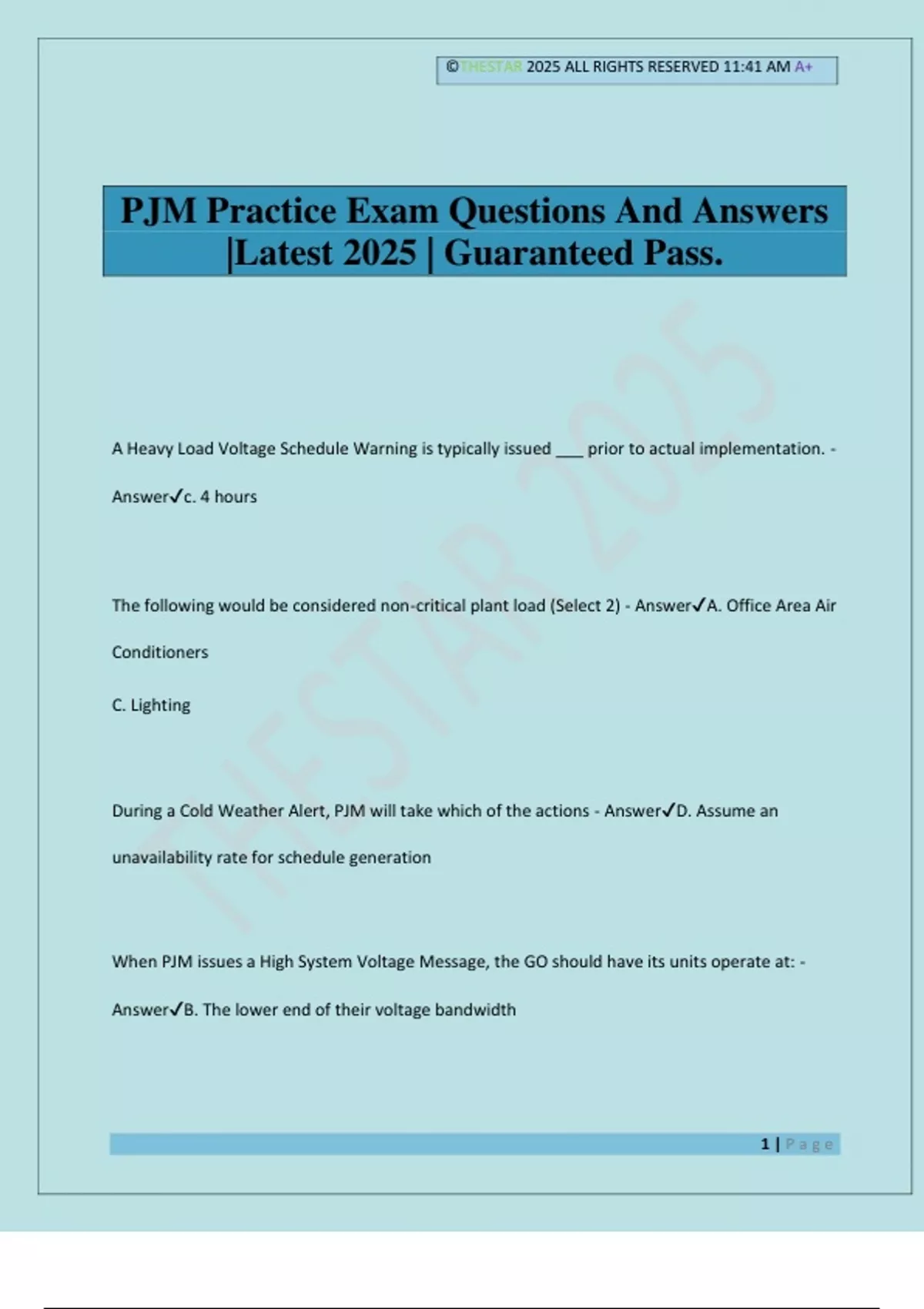 During a Cold Weather Alert, PJM will take which of the actions - Answer✔D. Assume an