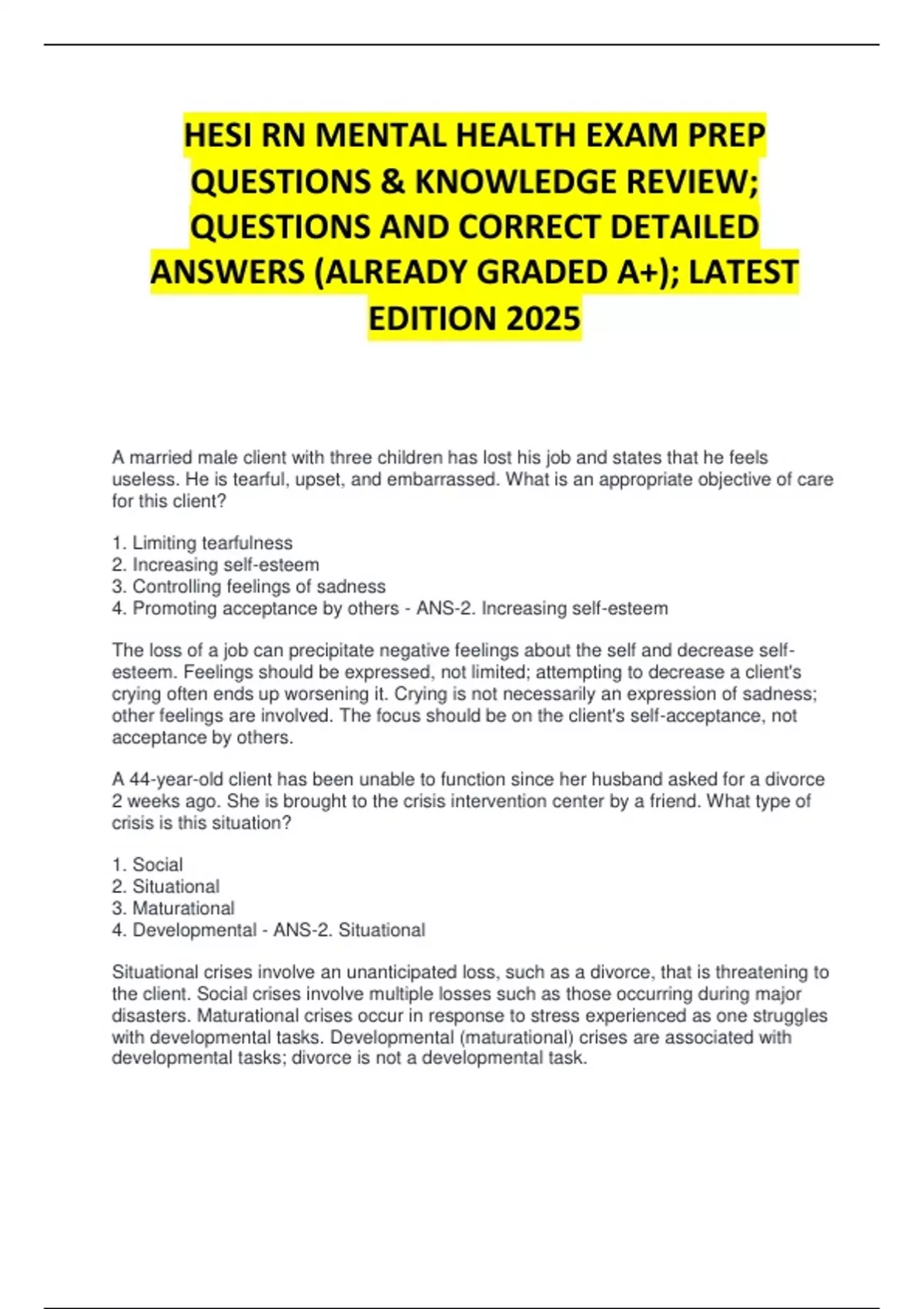 QUESTIONS AND CORRECT DETAILED