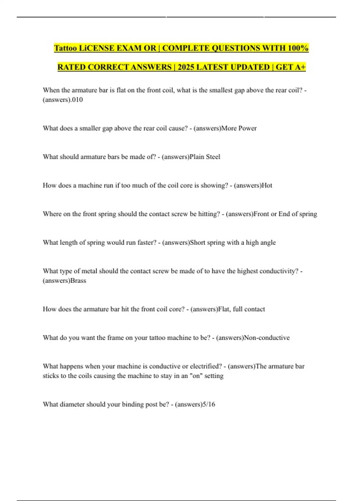 Tattoo LiCENSE EXAM OR | COMPLETE QUESTIONS WITH 100%