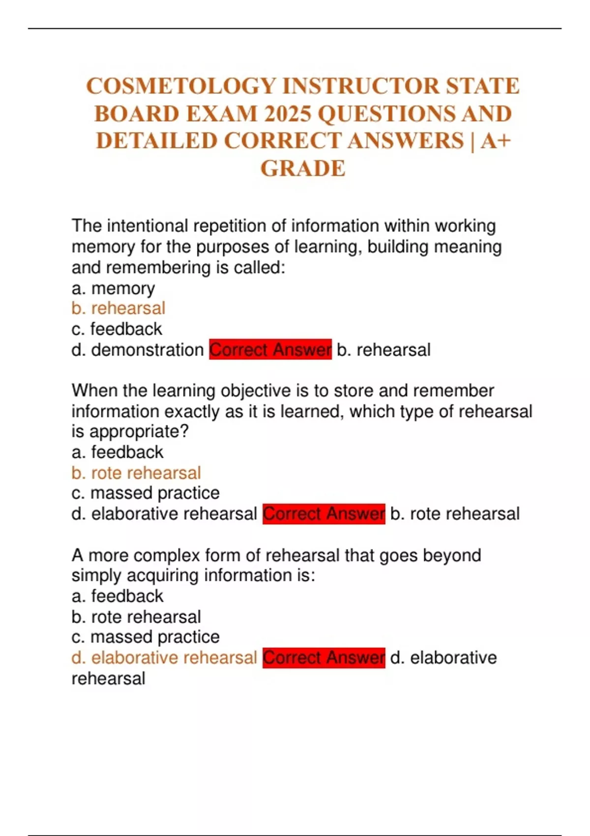 COSMETOLOGY INSTRUCTOR STATE BOARD EXAM 2025 QUESTIONS AND DETAILED CORRECT ANSWERS | A+ GRADE