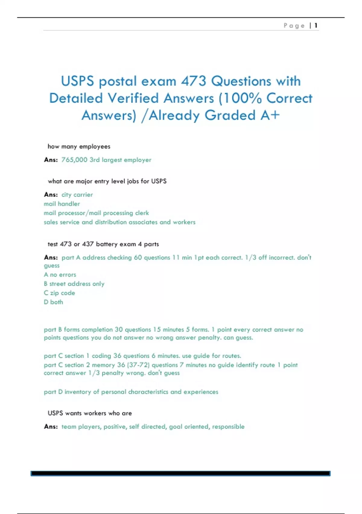 USPS postal exam 473 Questions with Detailed Verified Answers (100% Correct Answers) /Already Graded A+