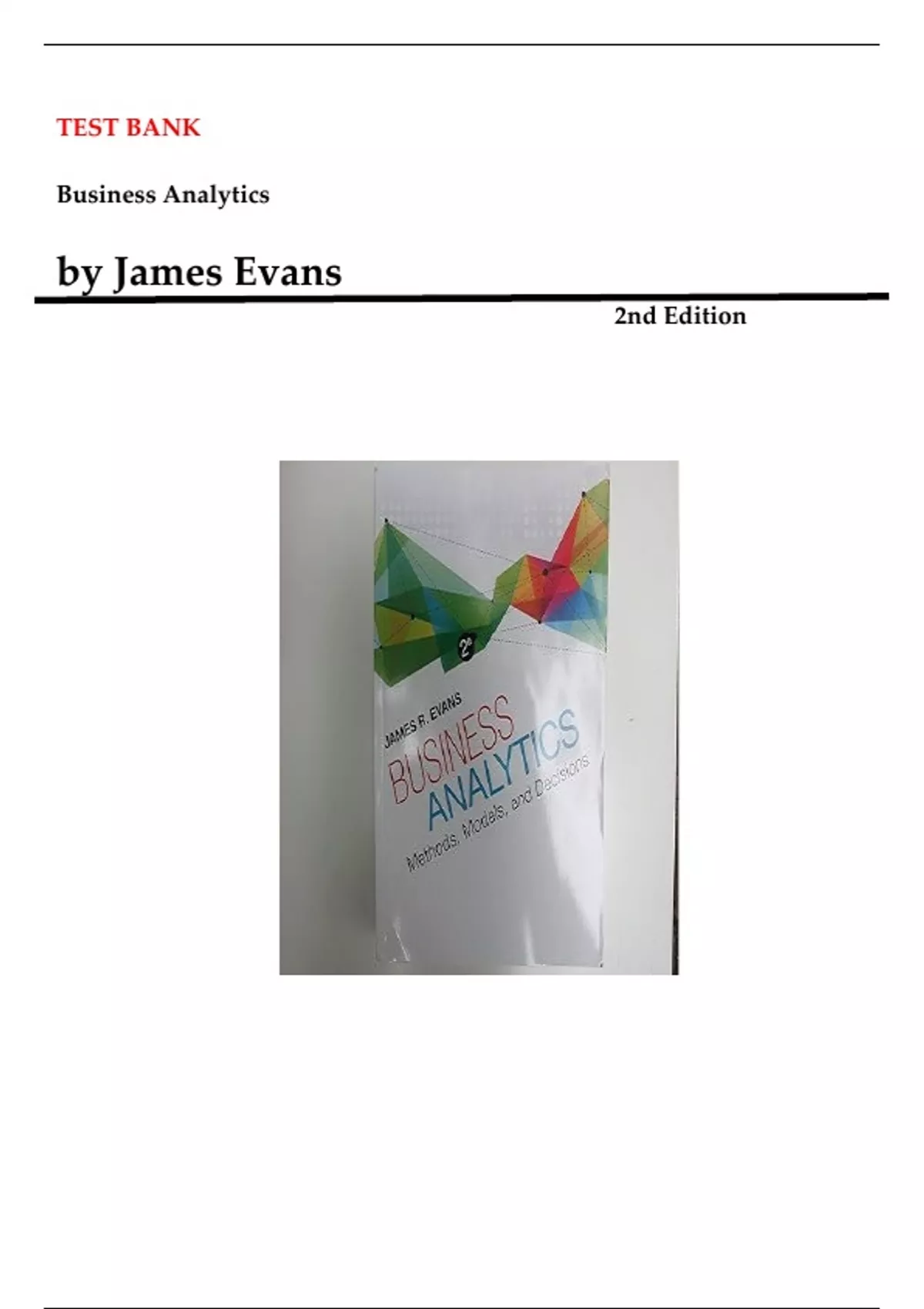 Test Bank - Business Analytics 2nd Edition by James Evans, All Chapters