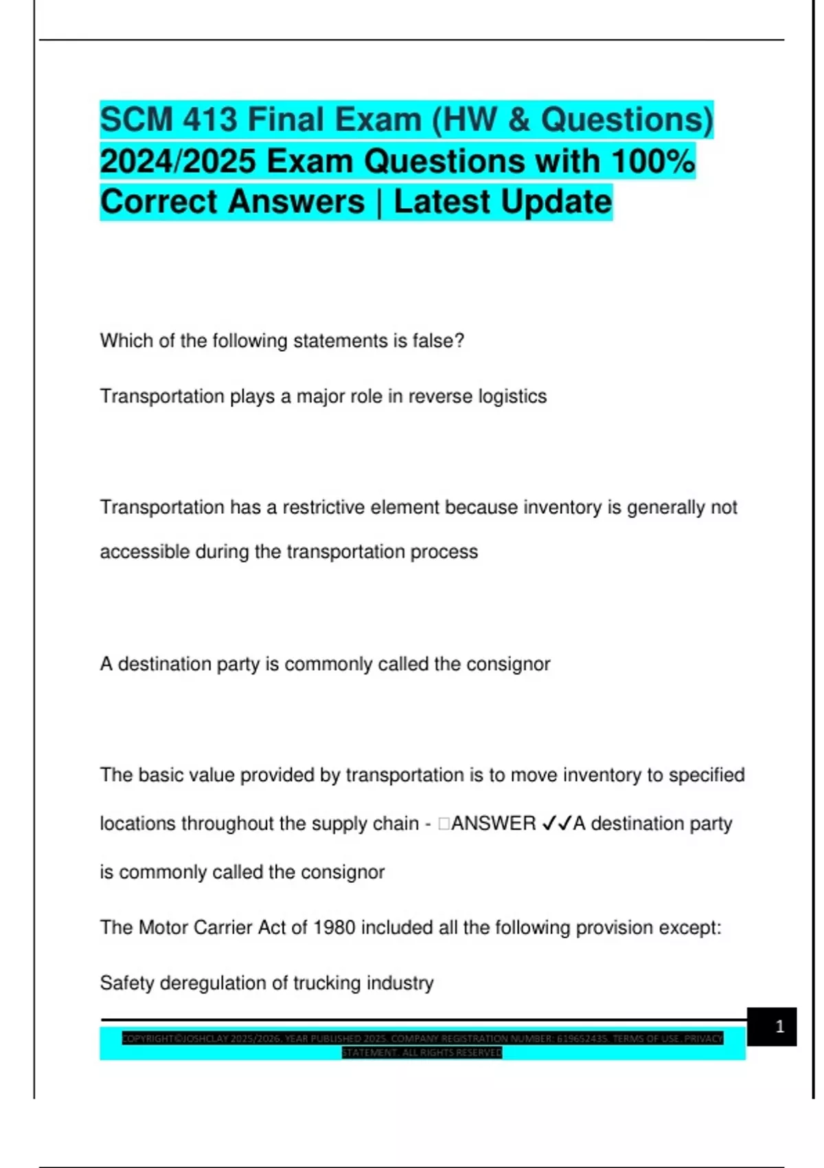 Correct Answers | Latest Update