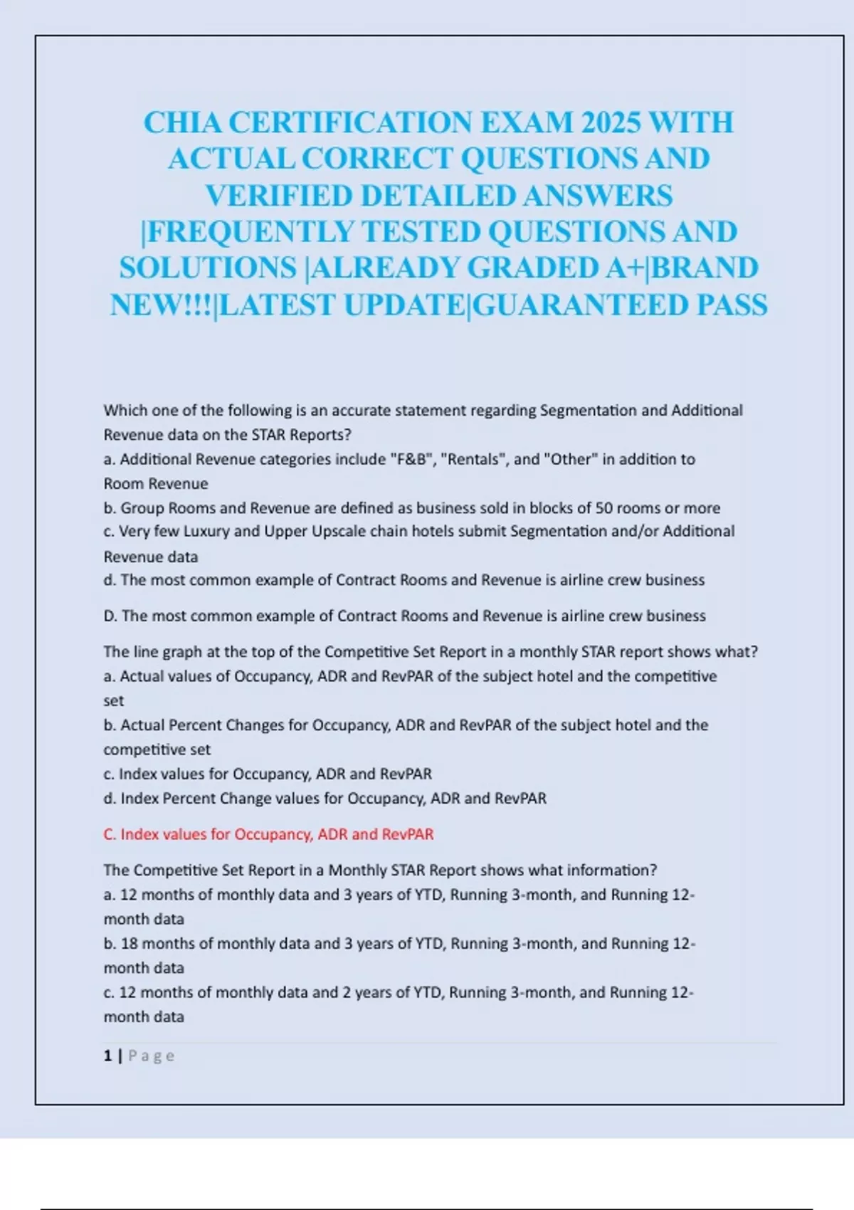 CHIA CERTIFICATION EXAM 2025 WITH ACTUAL CORRECT QUESTIONS AND VERIFIED DETAILED ANSWERS |FREQUENTLY TESTED QUESTIONS AND SOLUTIONS |ALREADY GRADED A+|BRAND NEW!!!|LATEST UPDATE|GUARANTEED PASS