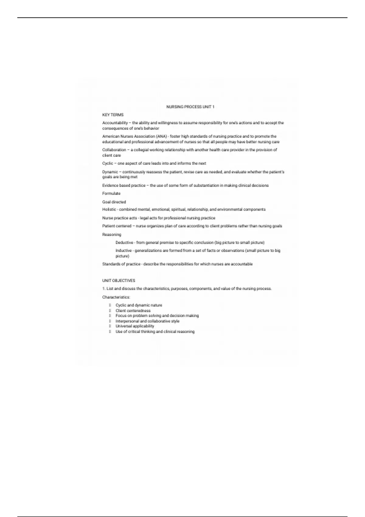 1. List and discuss the characteristics, purposes, components, and value of the nursing process.