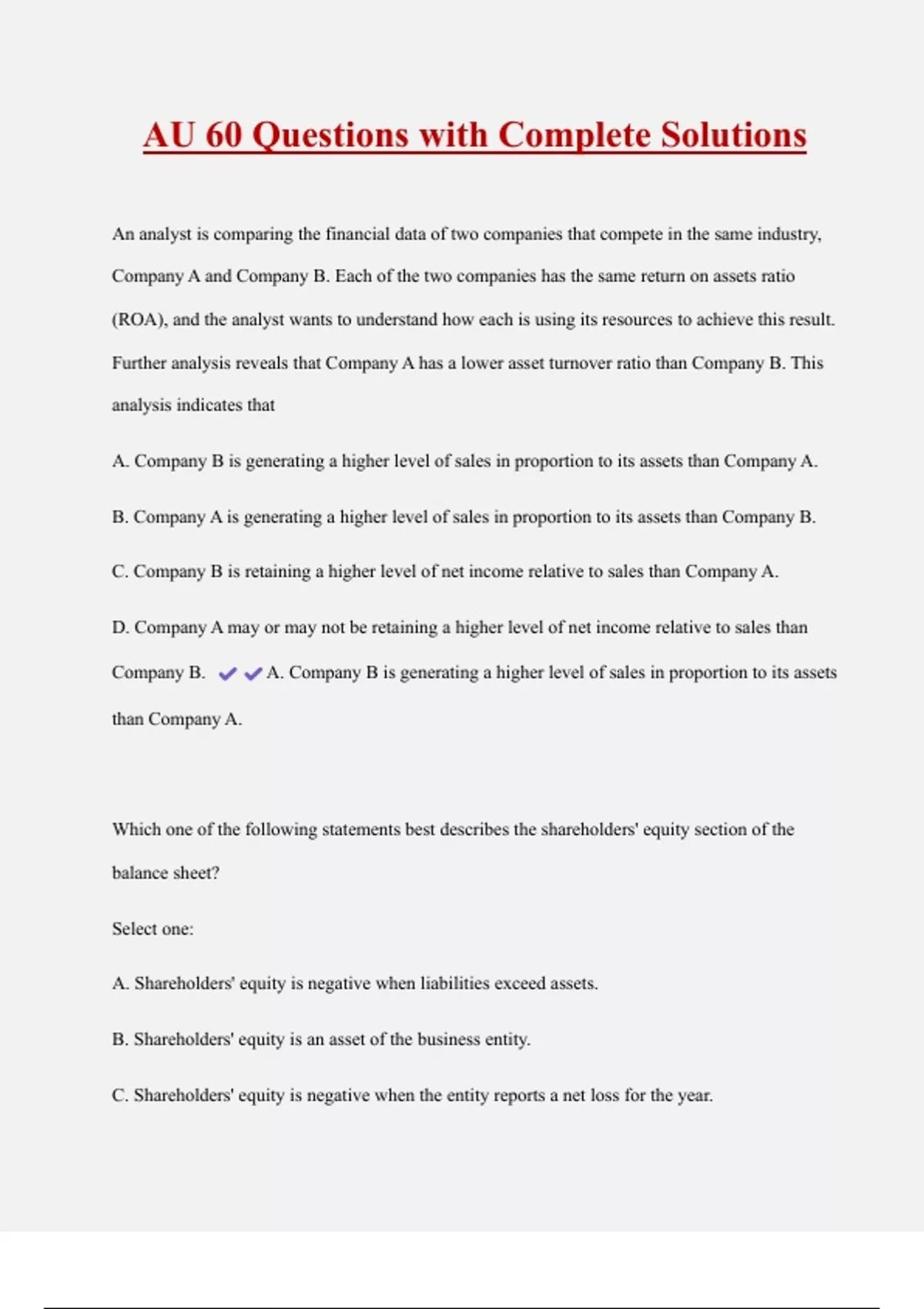 Company B. A. Company B is generating a higher level of sales in proportion to its assets
