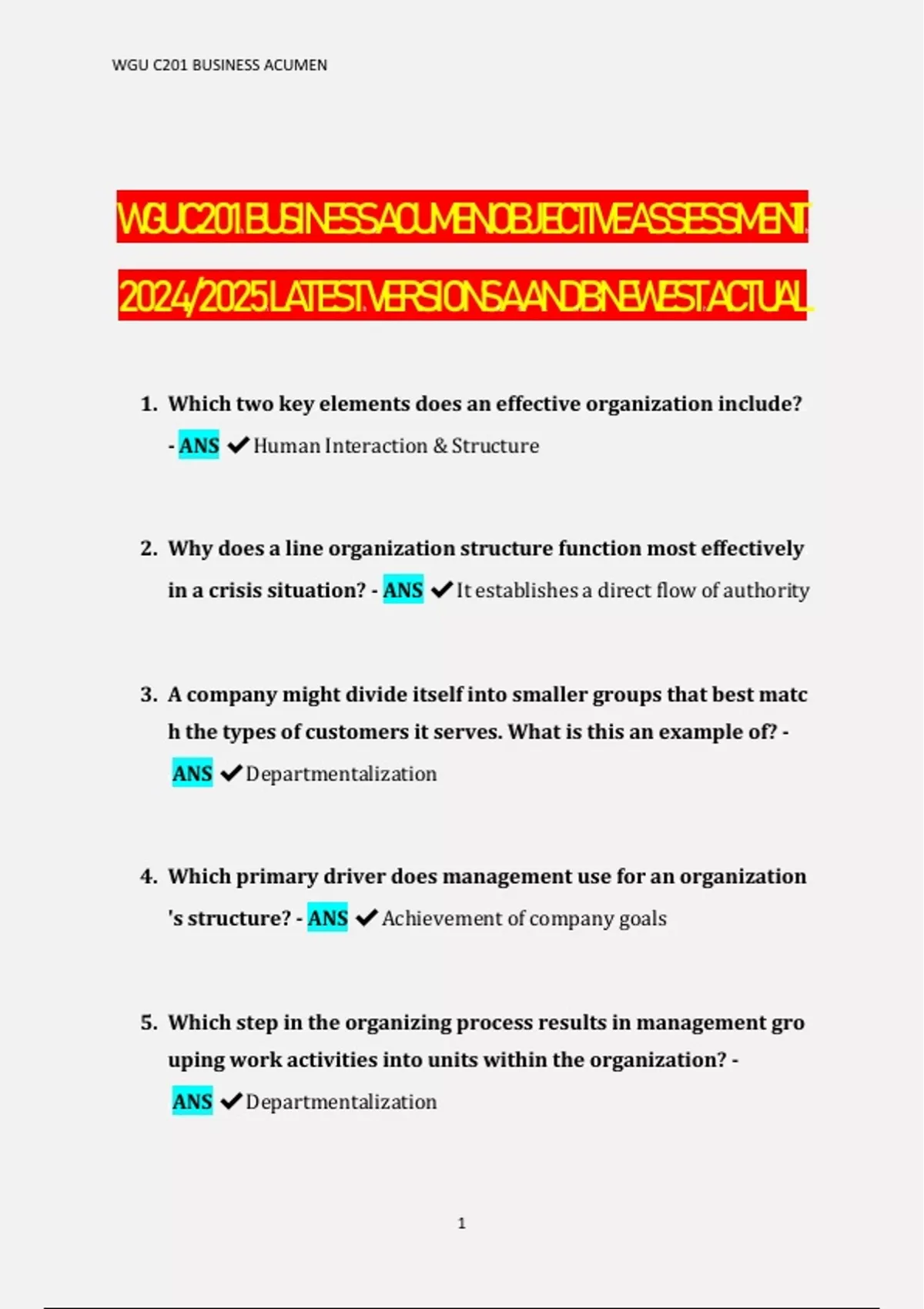 WGU C201 BUSINESS ACUMEN OBJECTIVE ASSESSMENT