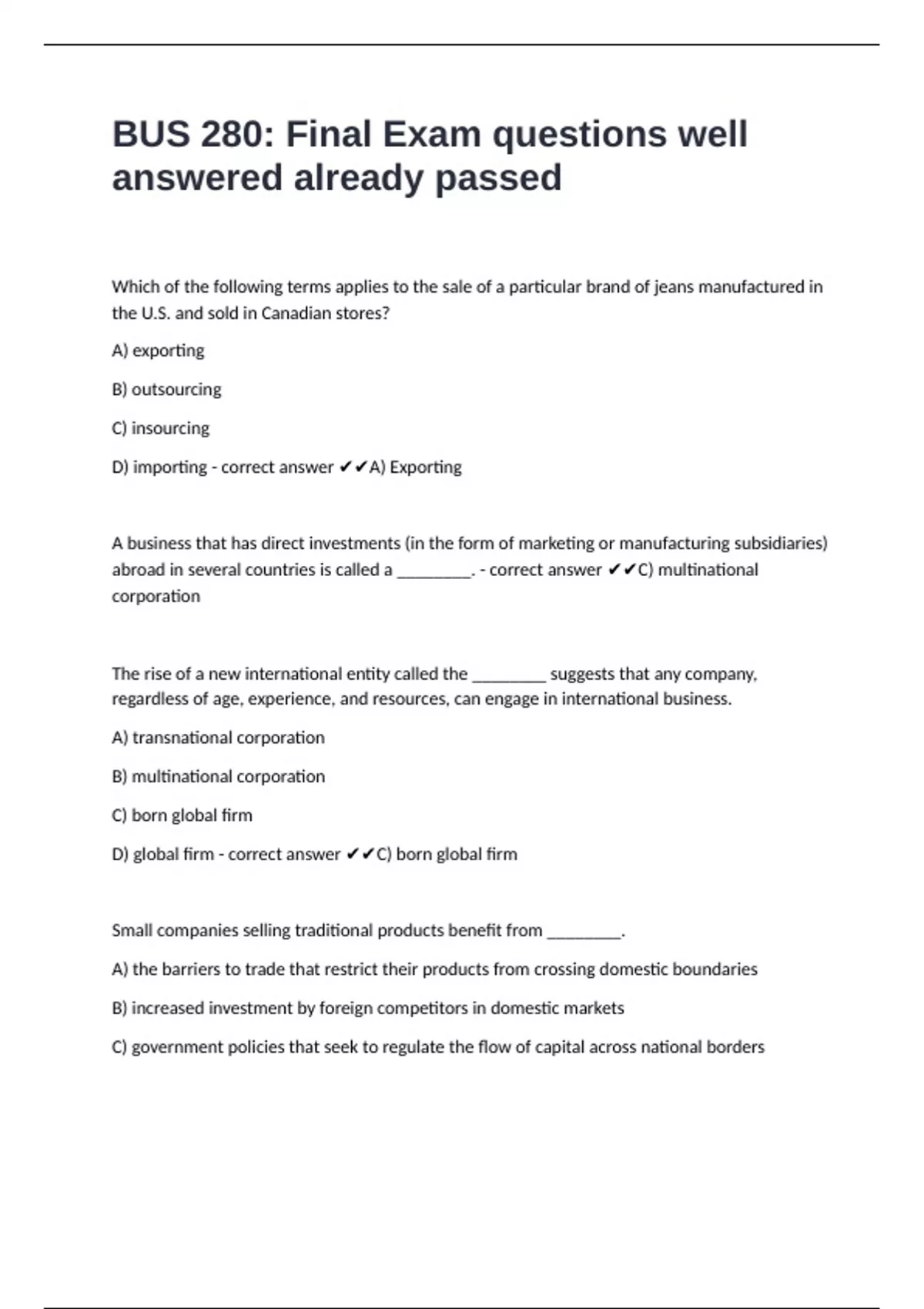 abroad in several countries is called a ________. - correct answer ✔✔C) multinational