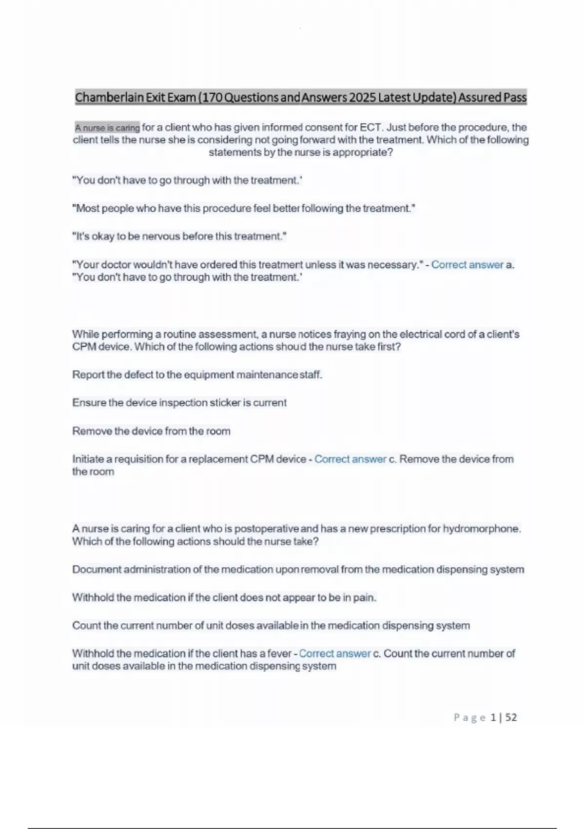 Chamberlain Exit Exam (170 Questions and Answers 2025 Latest Update) Assured Pass