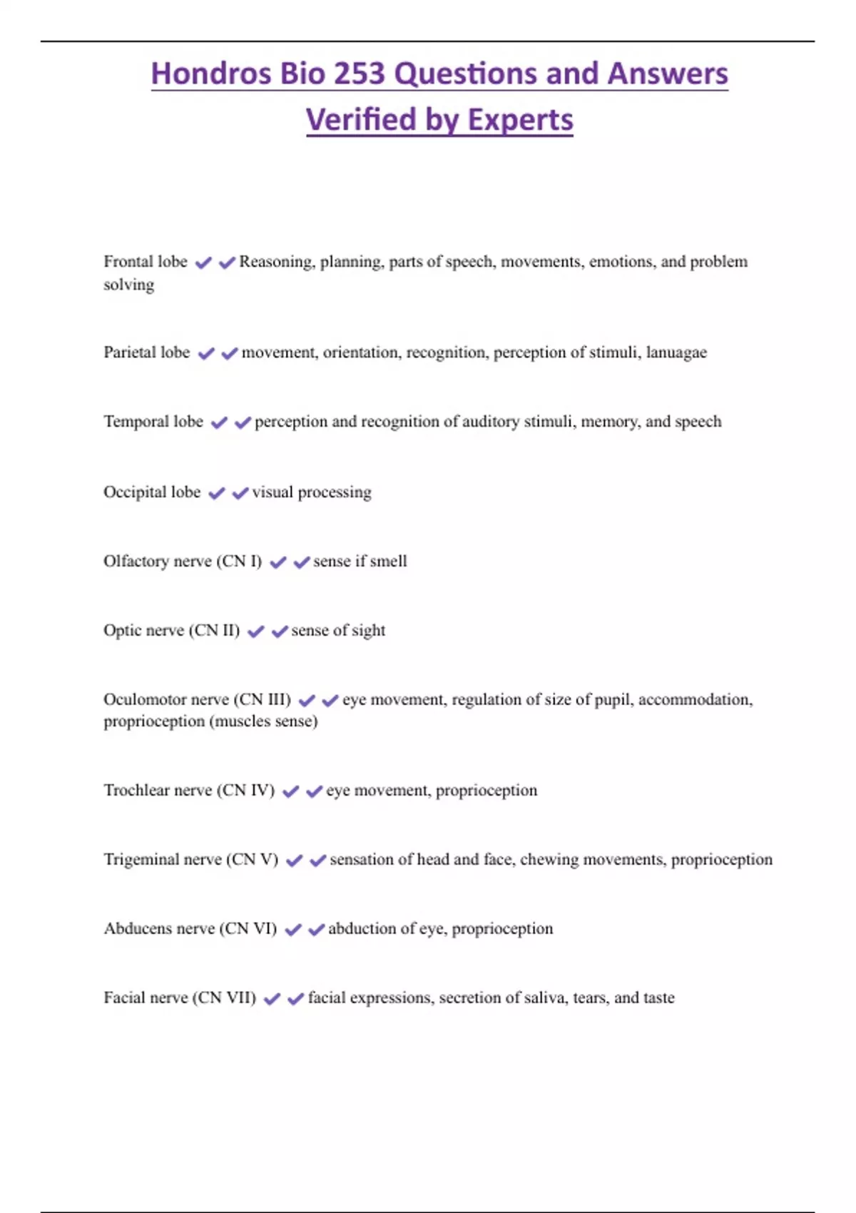 Hondros Bio 253 Questions and Answers Verified by Experts